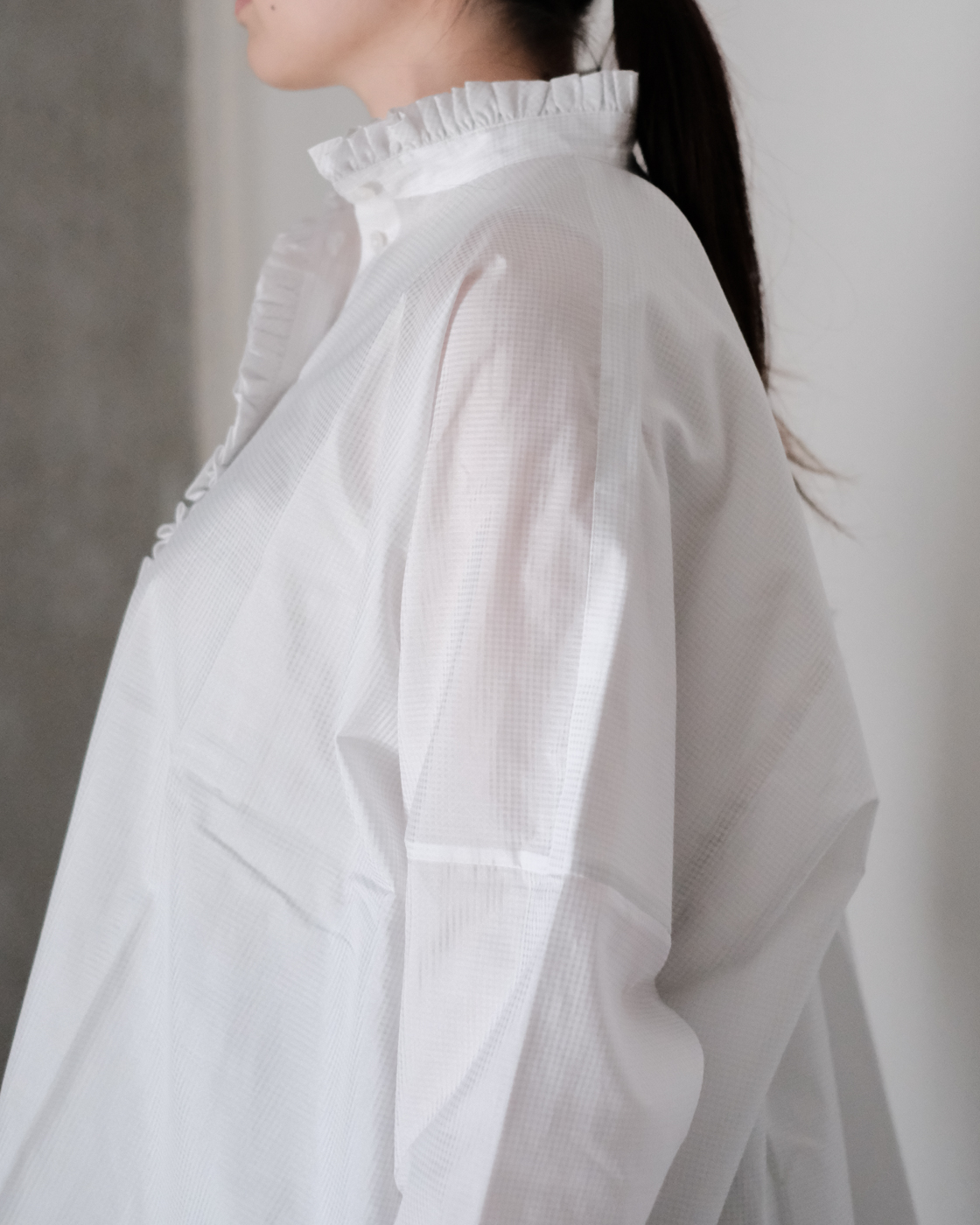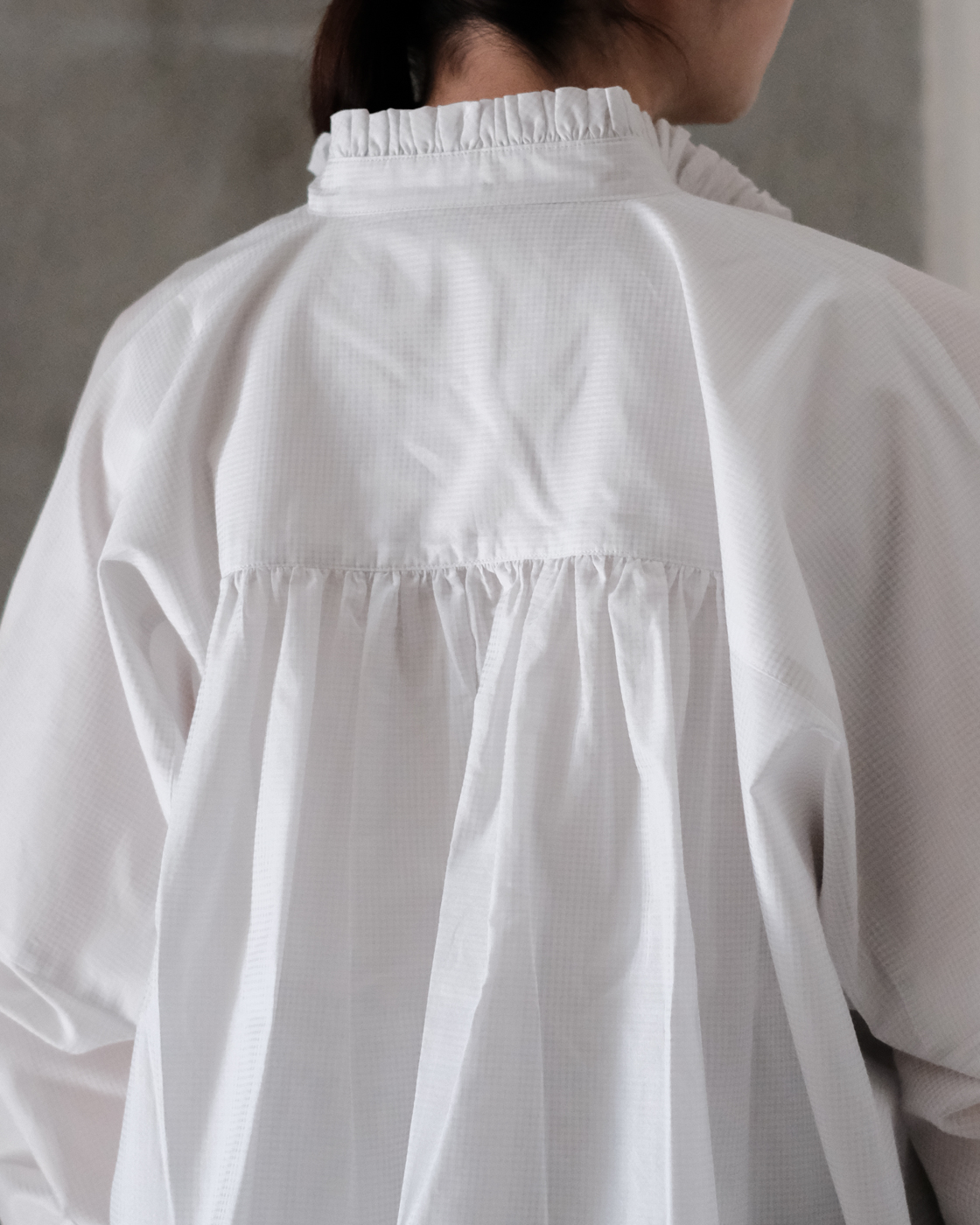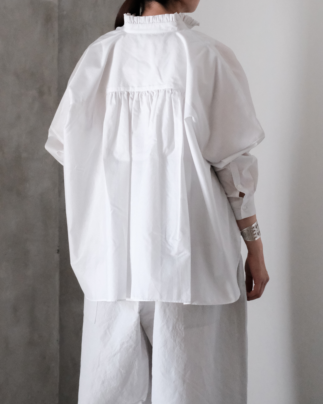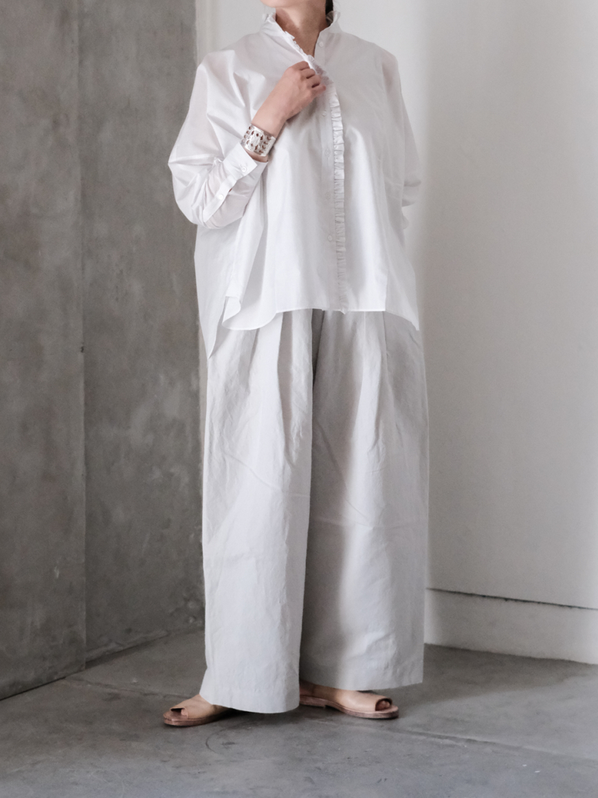 細やかなギャザーをたっぷりと寄せて凛とした佇まいを演出してくれるSACUCAの[frill gather blouse]が届きました。