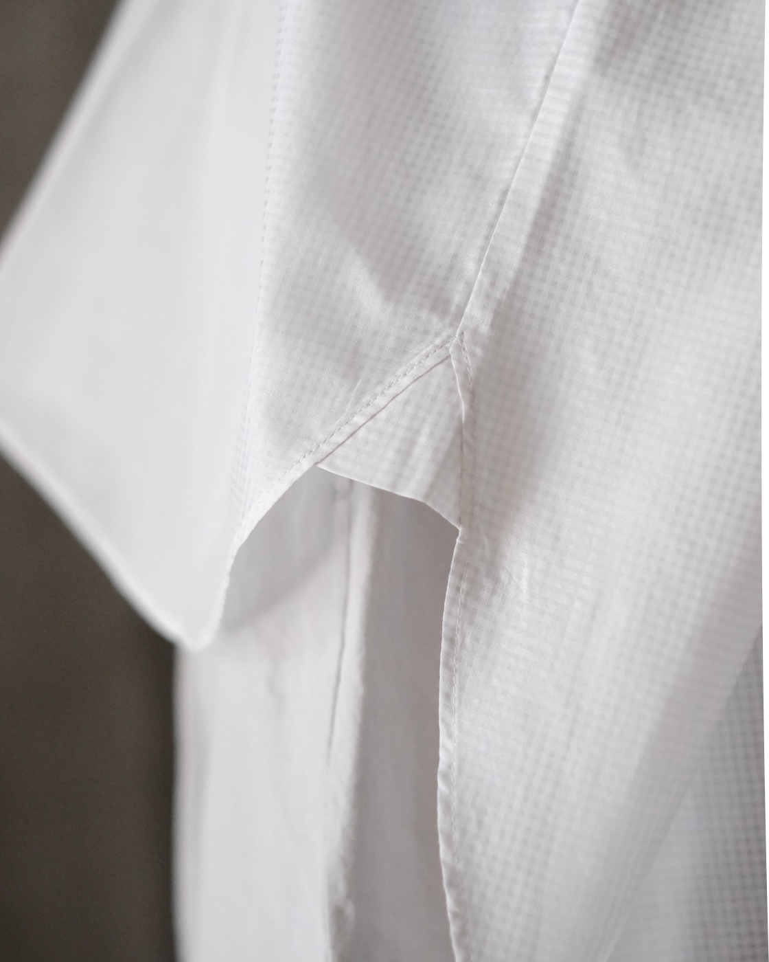 光にかざすと浮き上がるさり気ないチェックの織りが生地の美しさを引き立てます。
