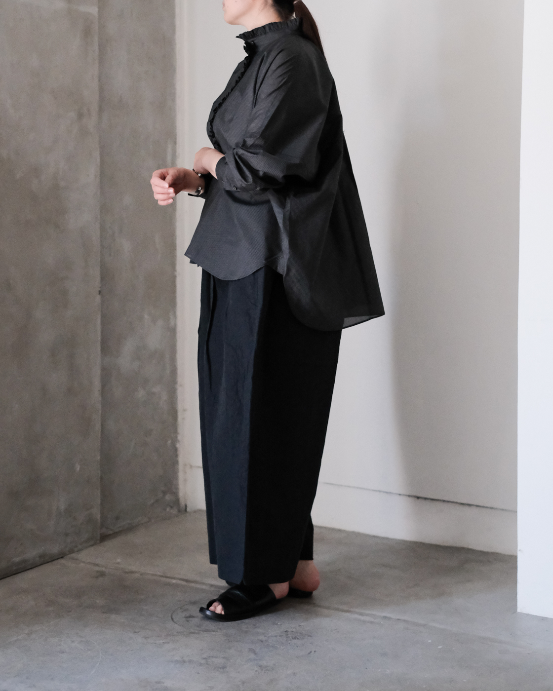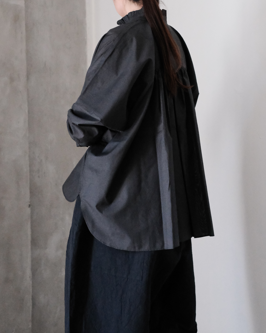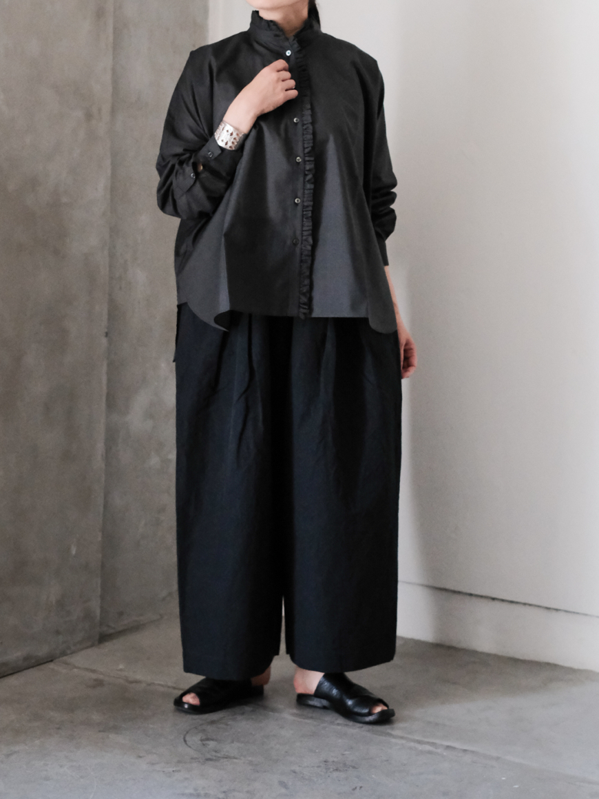 細やかなギャザーをたっぷりと寄せて凛とした佇まいを演出してくれるSACUCAの[frill gather blouse]が届きました。