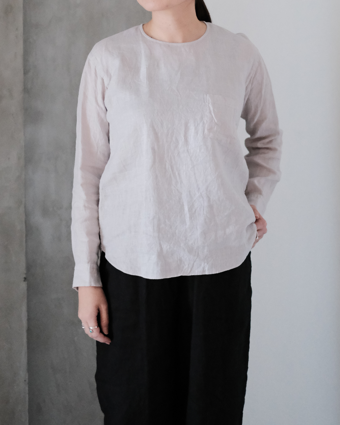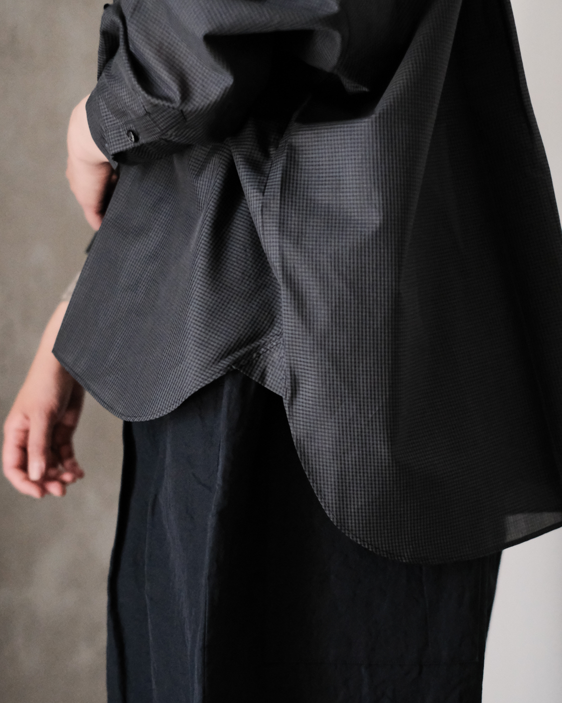 着丈の長さを前後で変えることで、自然と裾に動きが出て軽やかさも加わり、より一層奥行きのある一枚に。