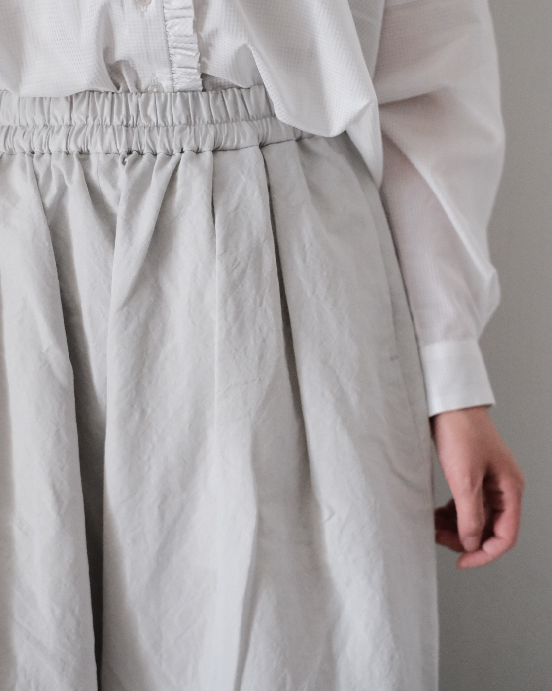 フロントのタックが上品なラインを作り、イージーさを感じさせないデザイン。