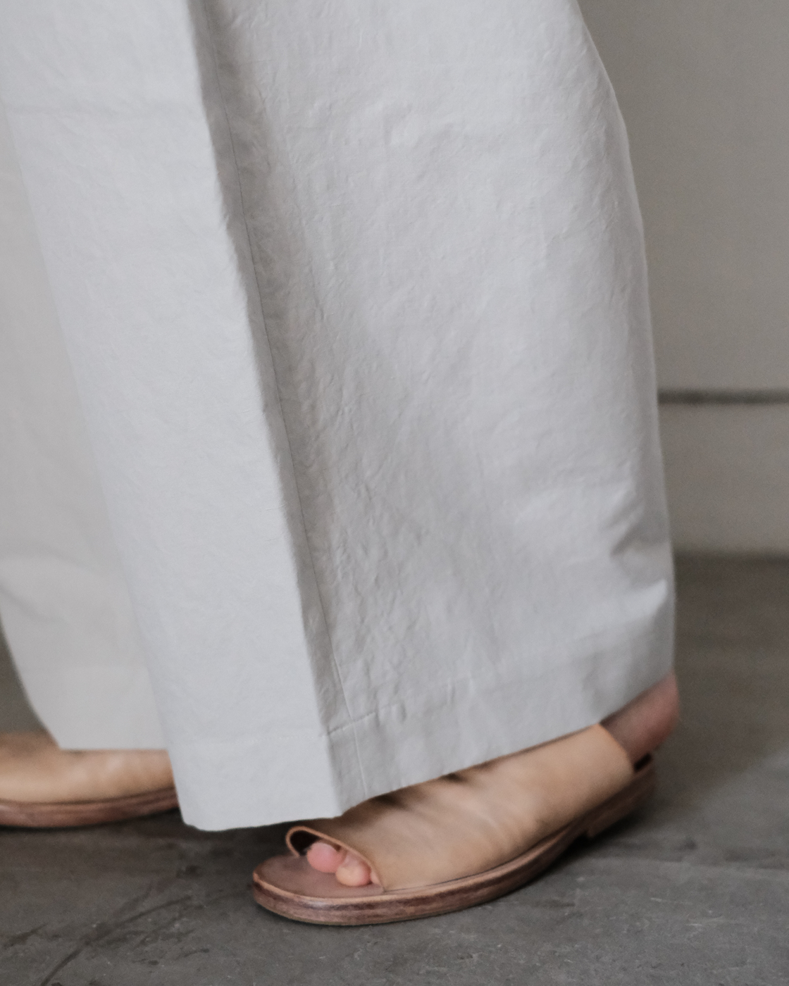 ルーズなワイドシルエットに美しさを感じさせるパンツです。