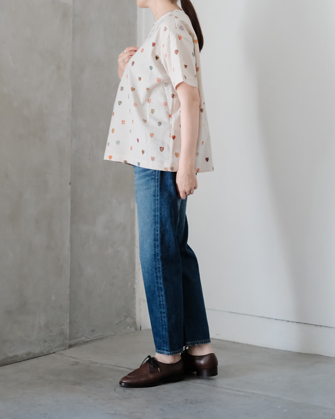 ゆったりとした着心地でありながら、大きく見えない緻密なパターンです。