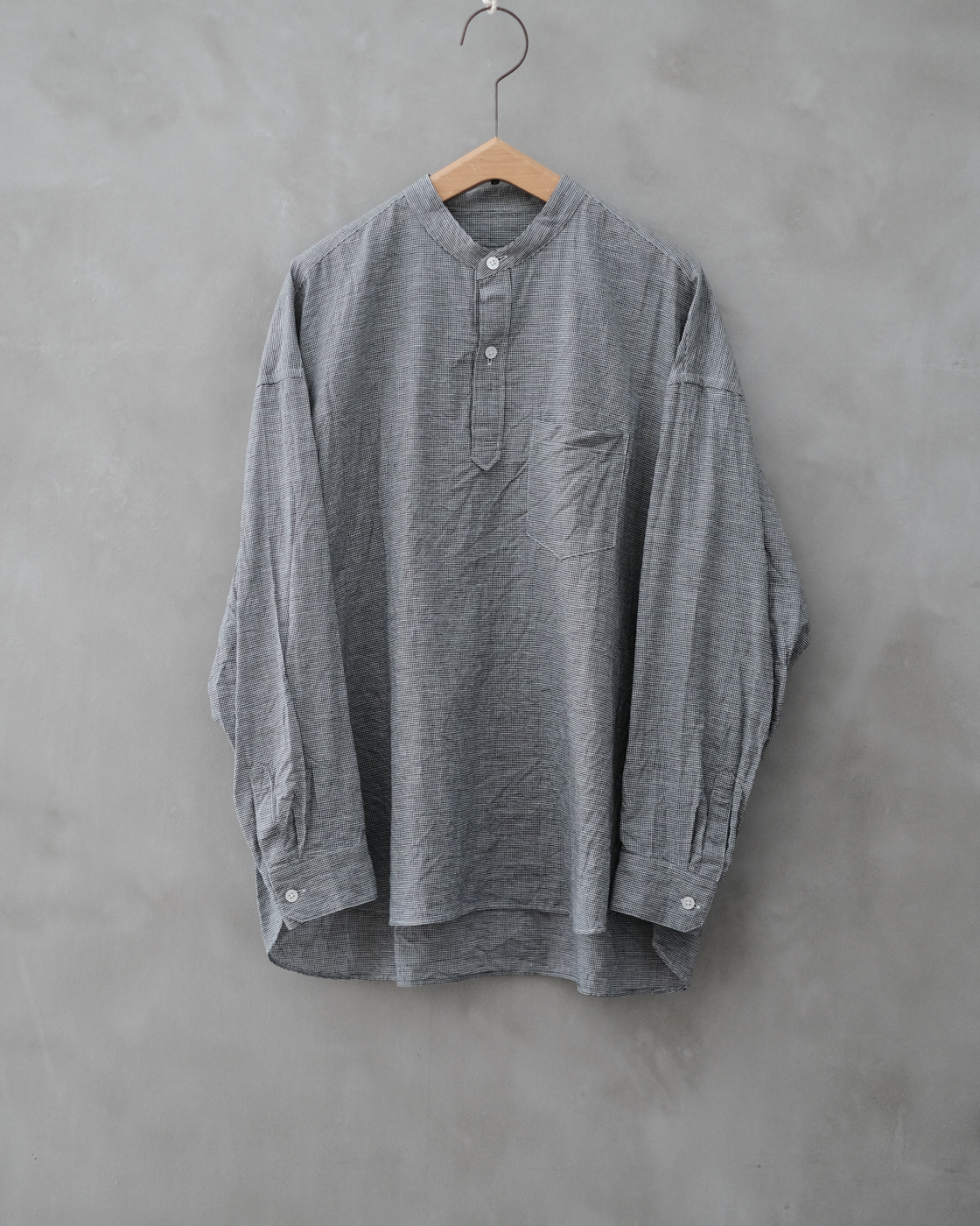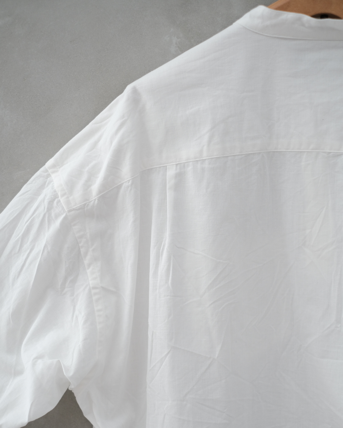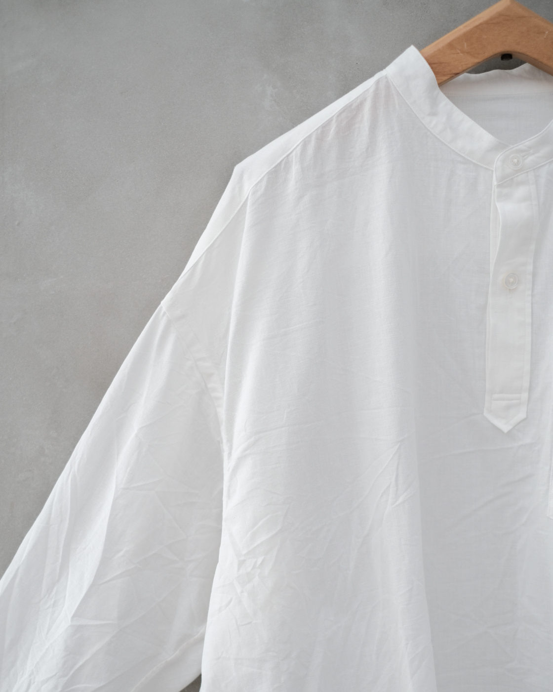 普段のゴーシュのシャツの中でも肩周り、身頃、袖、着丈とゆったりとした作りのシャツ。
