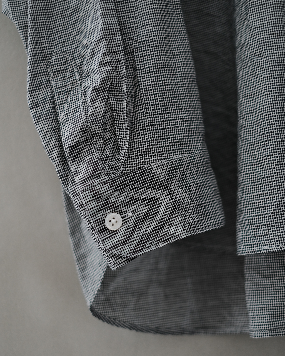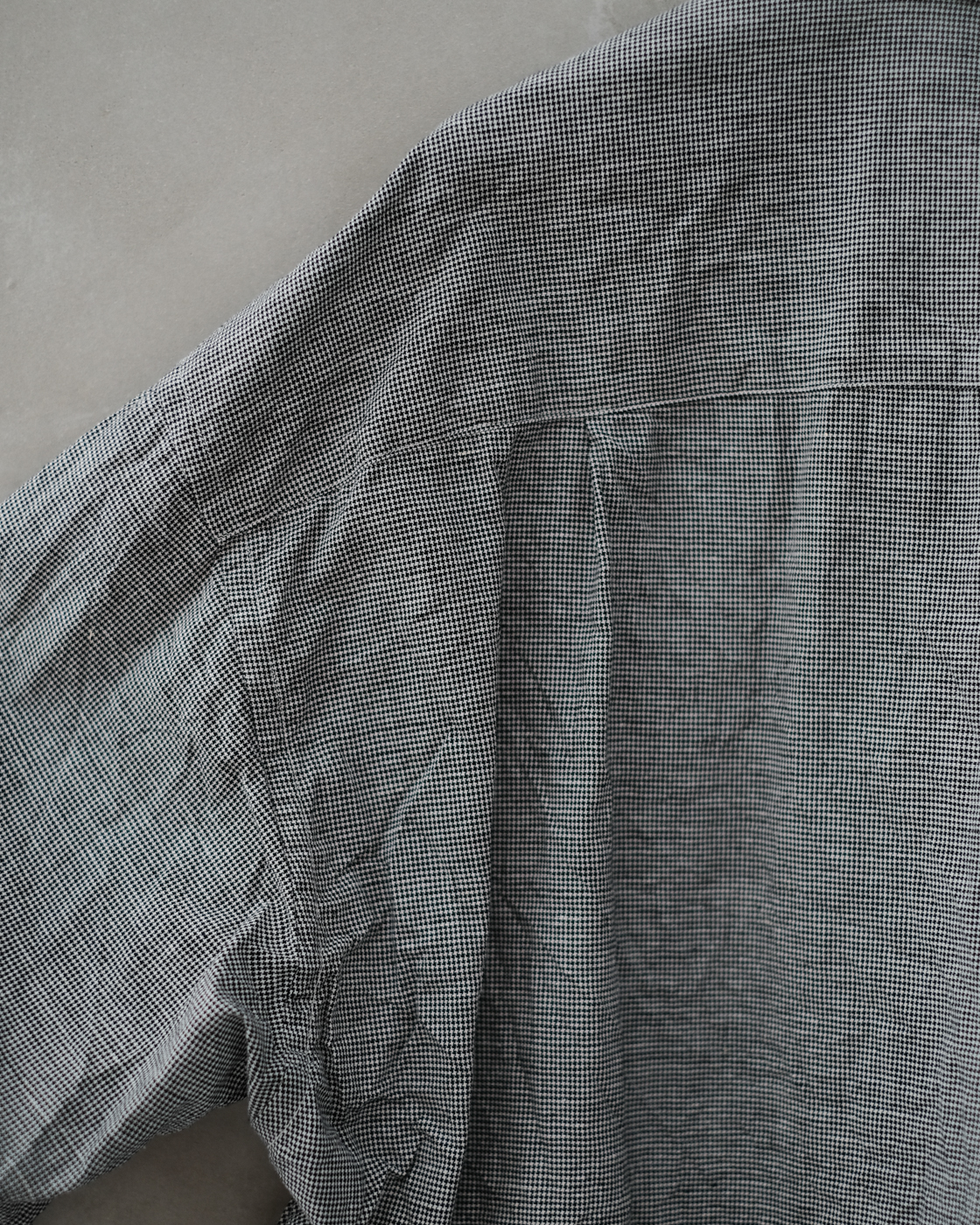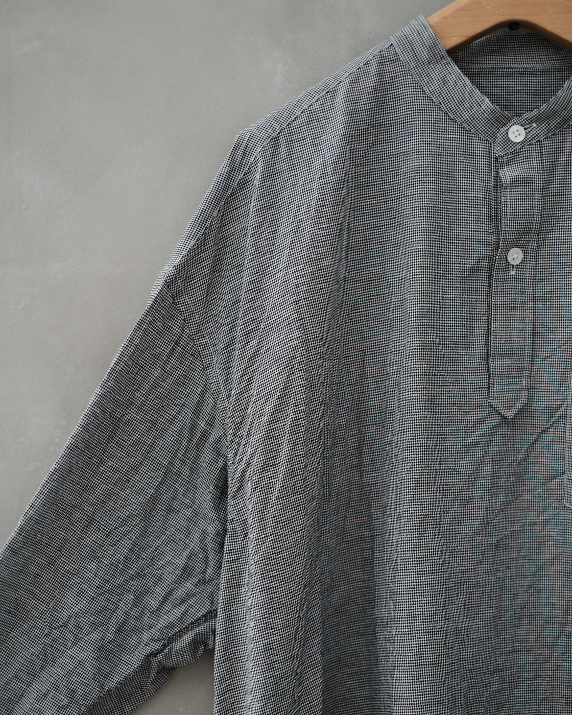 普段のゴーシュのシャツの中でも肩周り、身頃、袖、着丈とゆったりとした作りのシャツ。