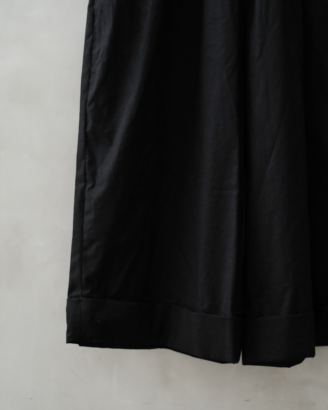 裾がダブルになっている為、シルエットにより立体感が強調され印象的なパンツに。