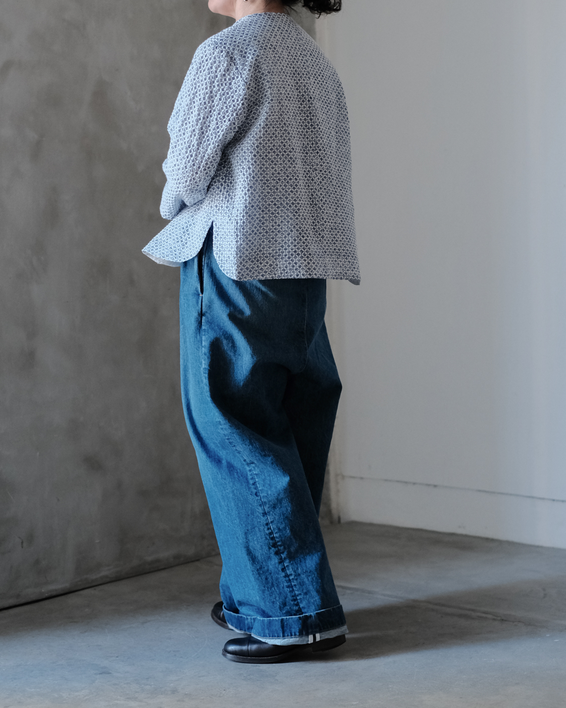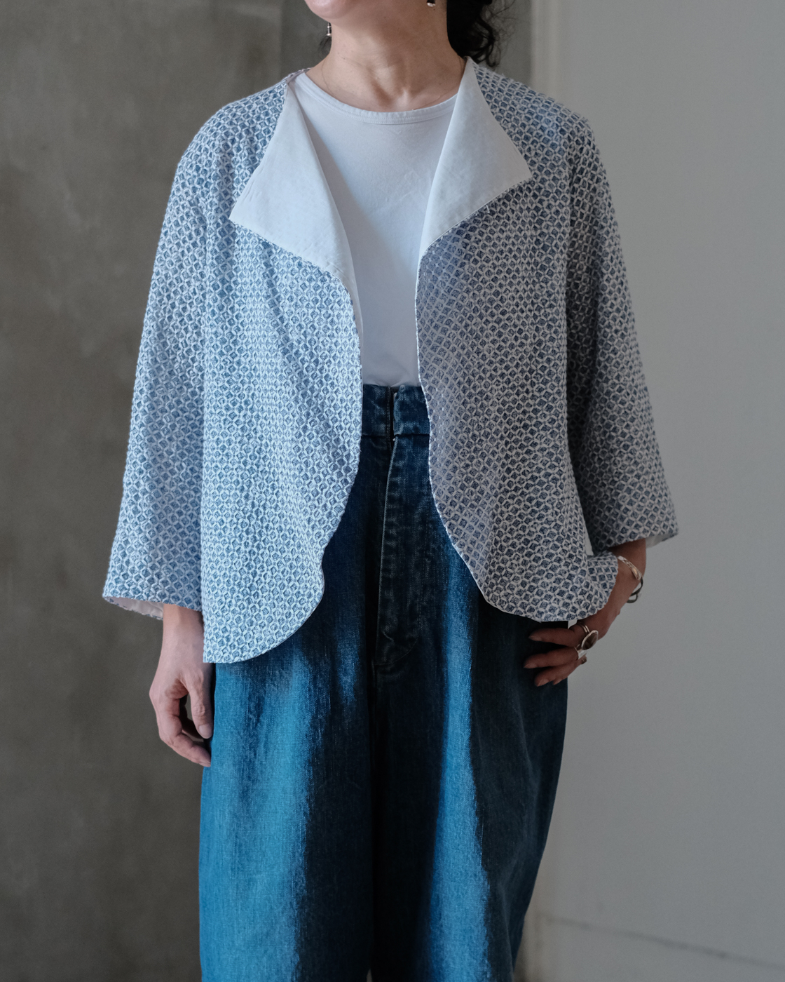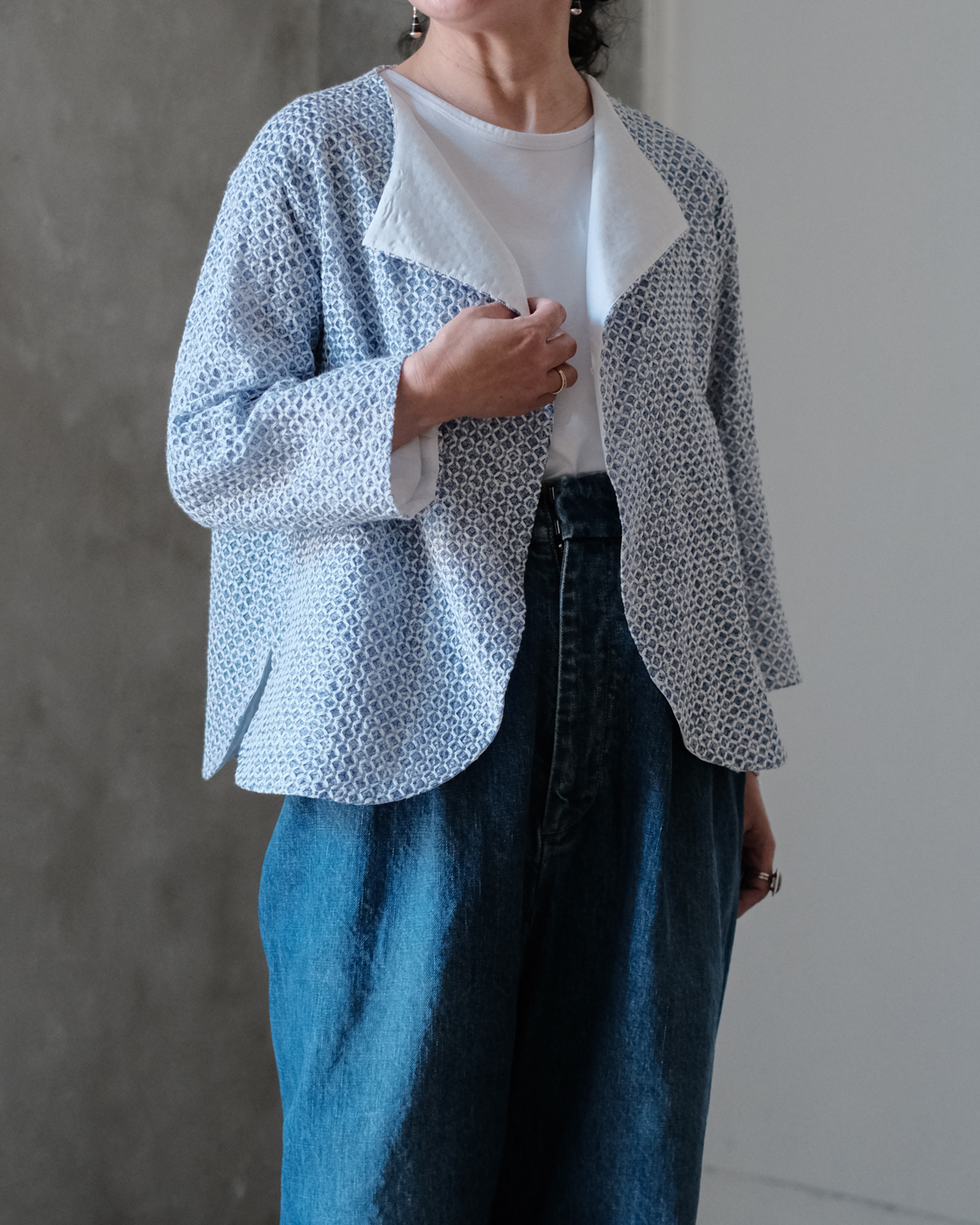 身幅がゆったりとしており、着丈は短めとなりショートジャケットのような作りです。