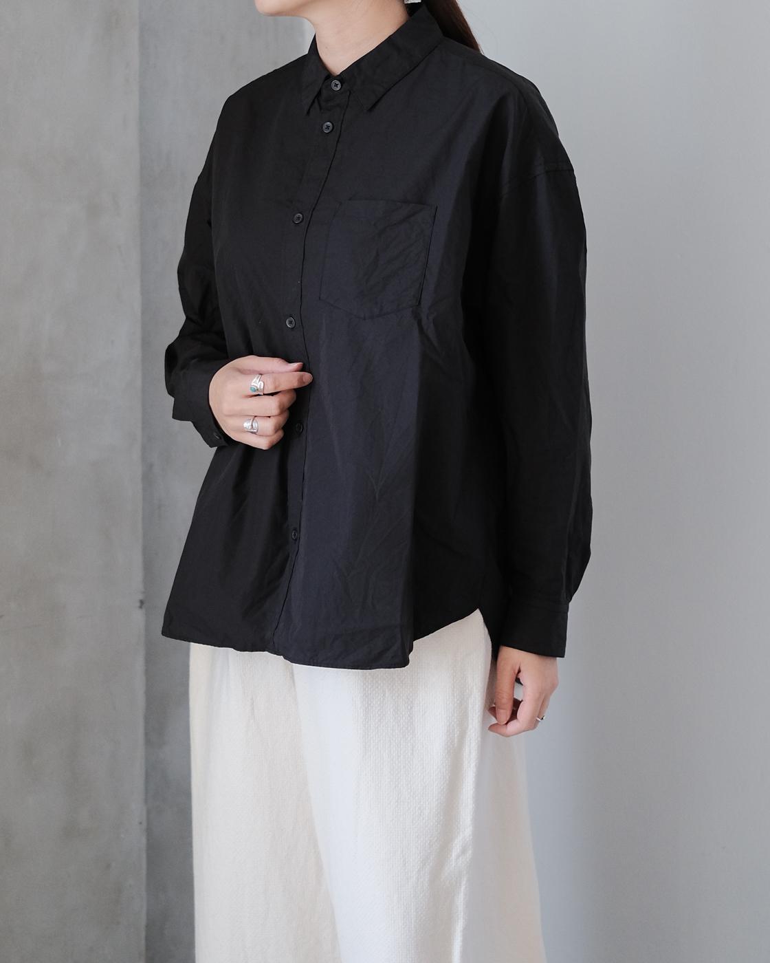 細やかに計算してされたゴーシュならではのオーバーサイズのレギュラーカラーシャツです。