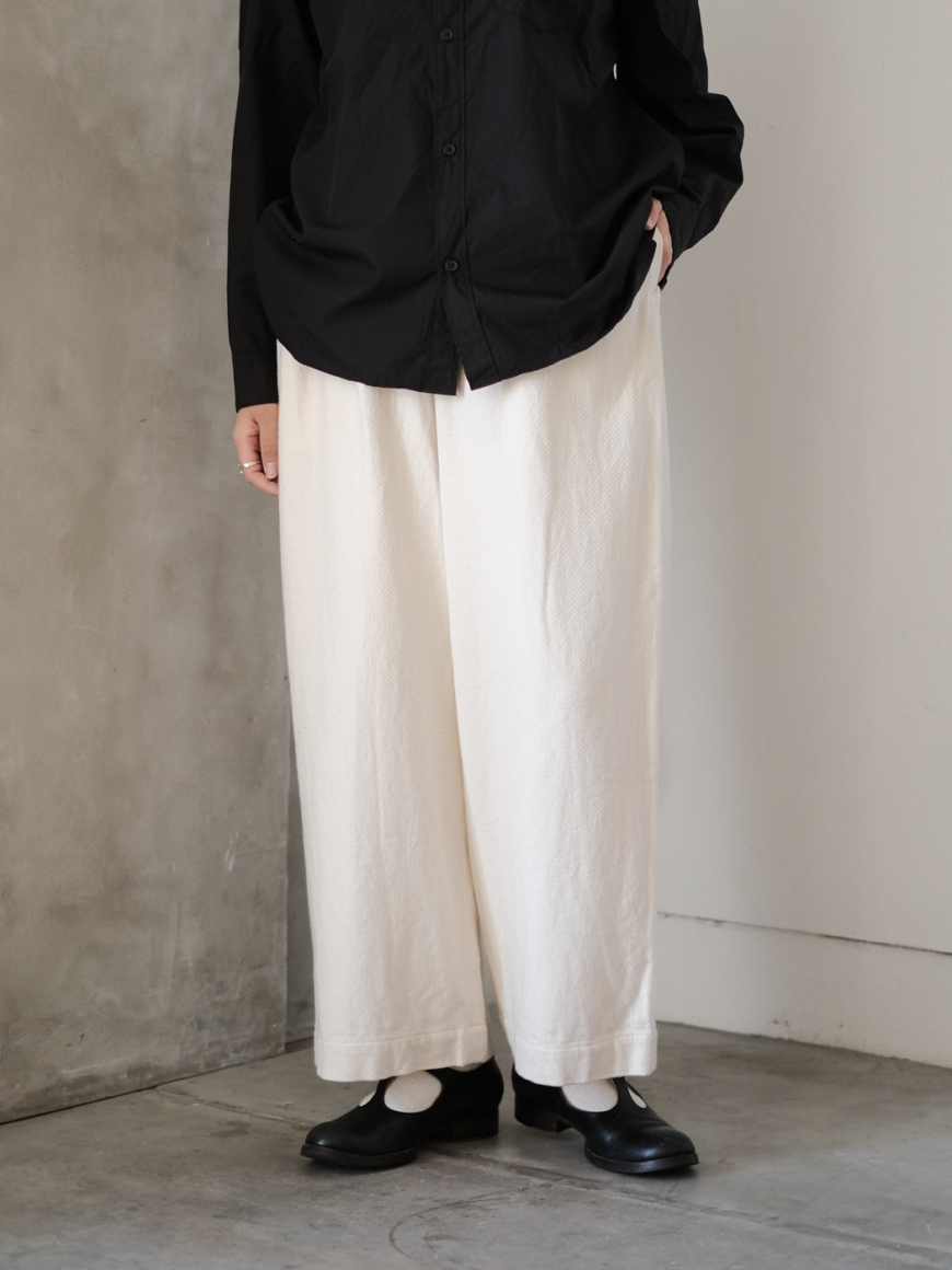 柔らかい生地の風合いと落ち感を活かしたデザイン。