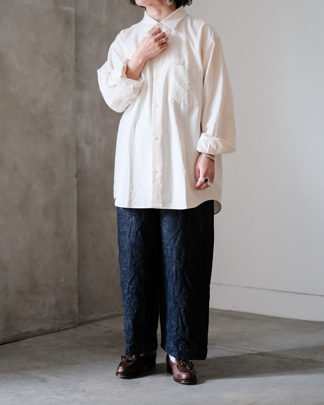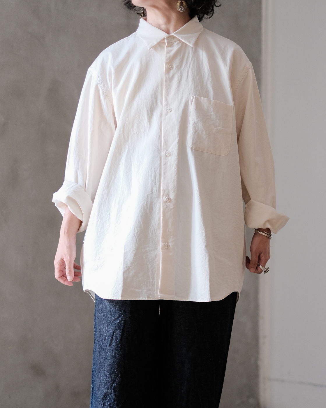 程よい緩さのあるシルエットが魅力となるYAECA の[Oxford Button Wide Shirt ]が届きました。