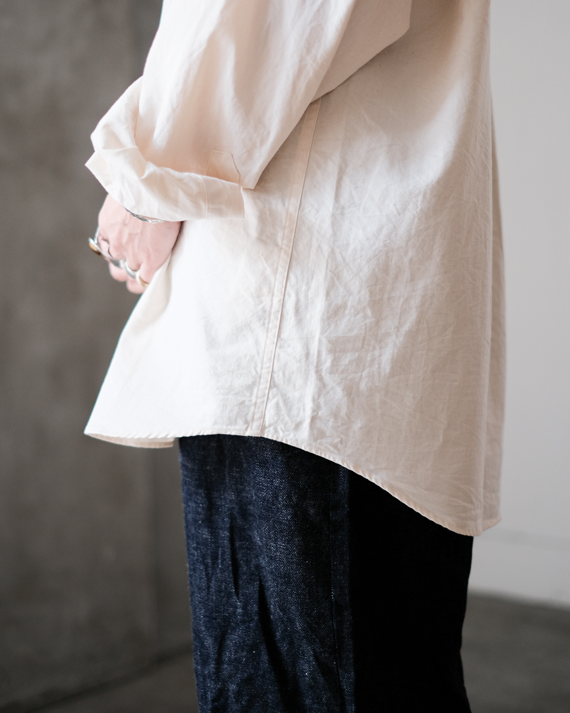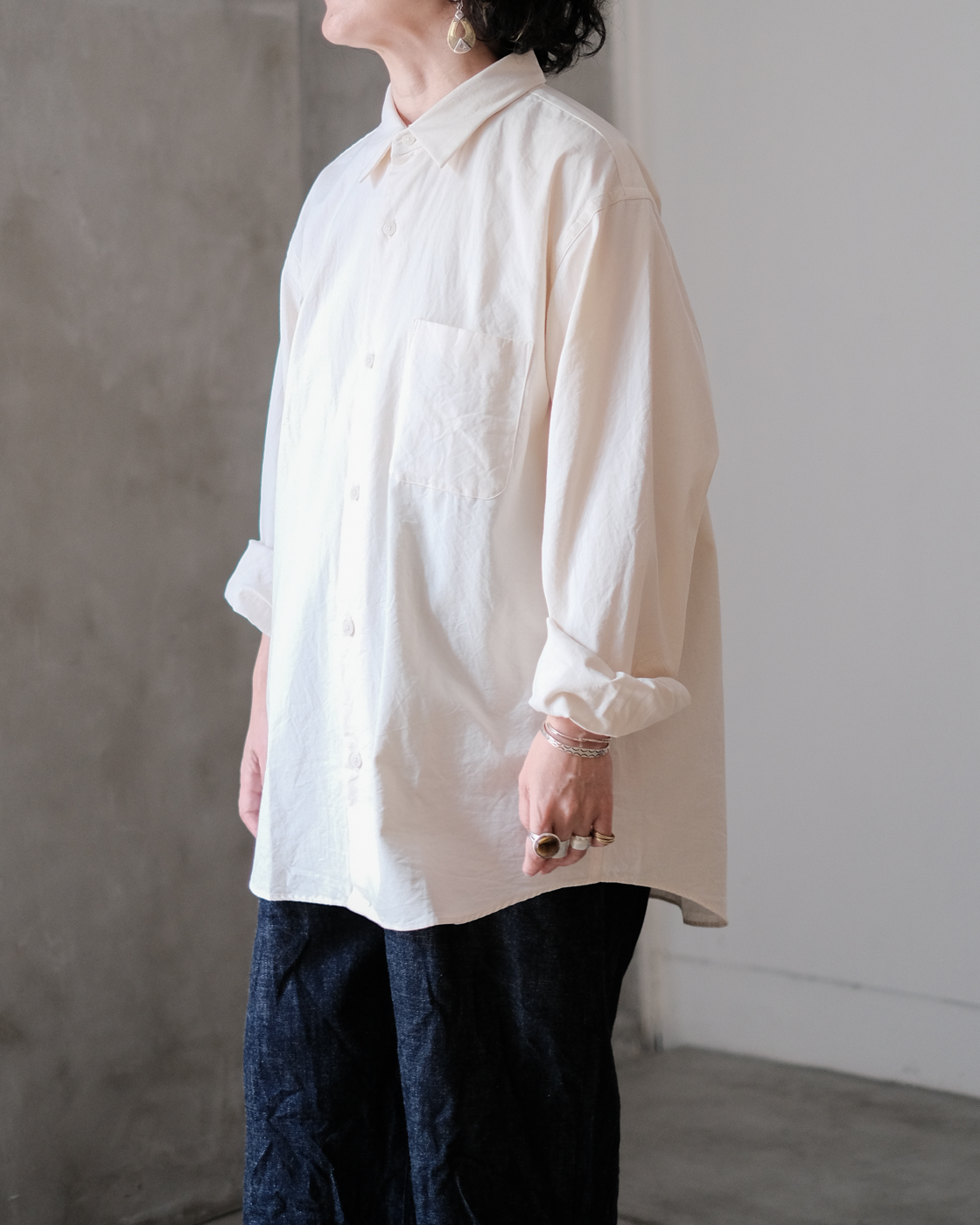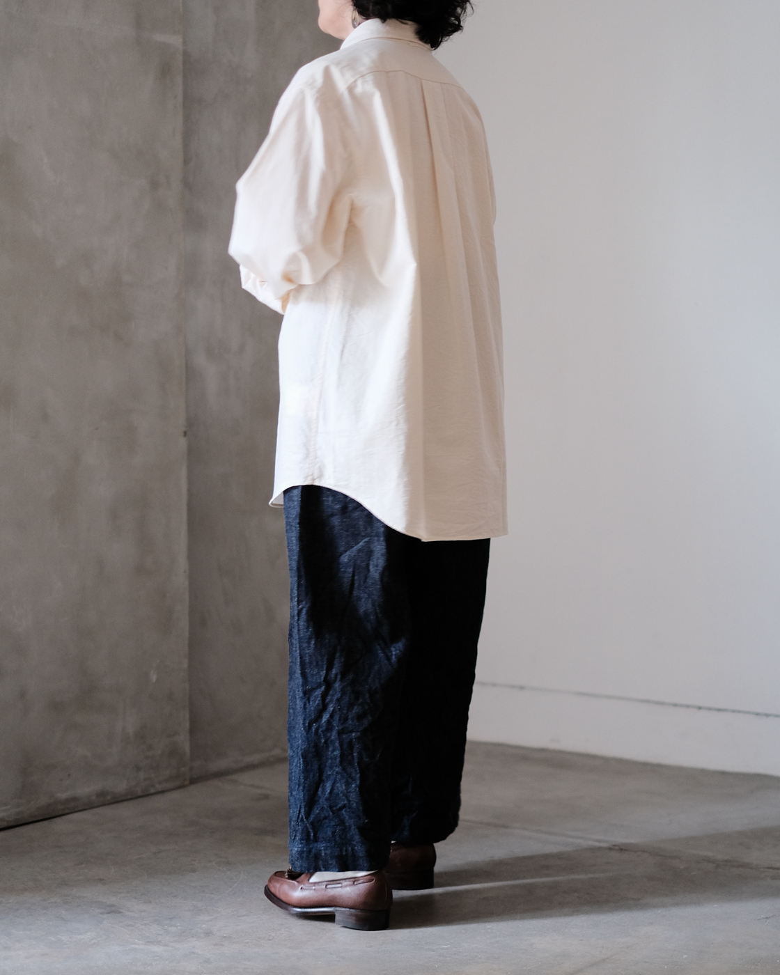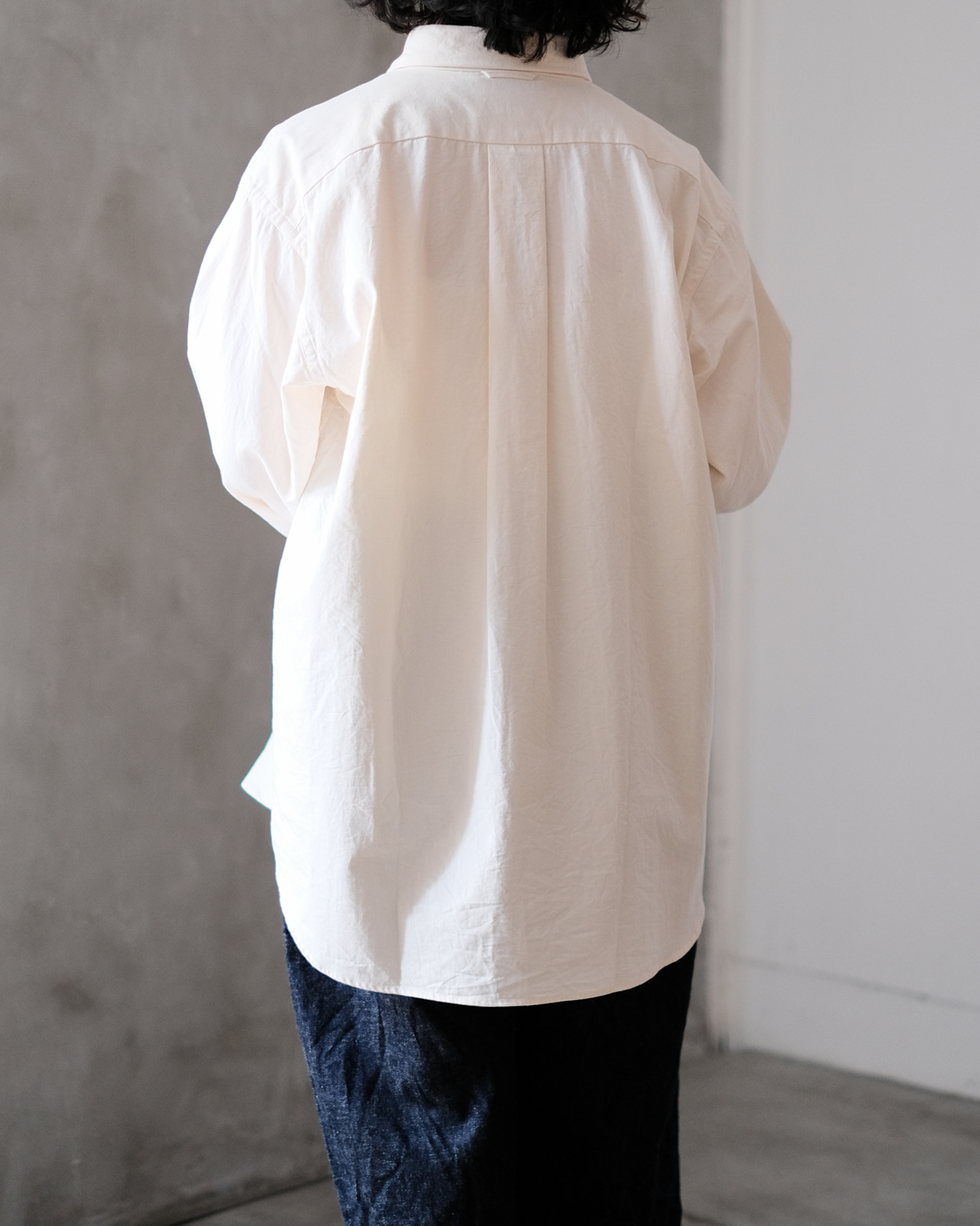 Oxford Button Wide Shirt (Unisex) col.Natural