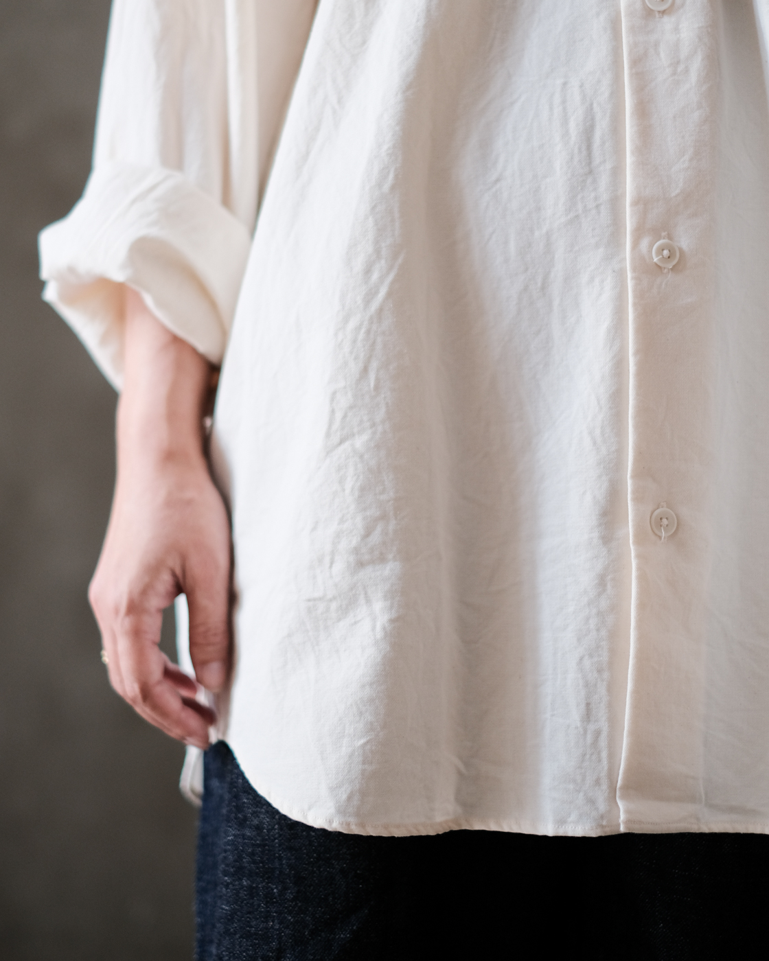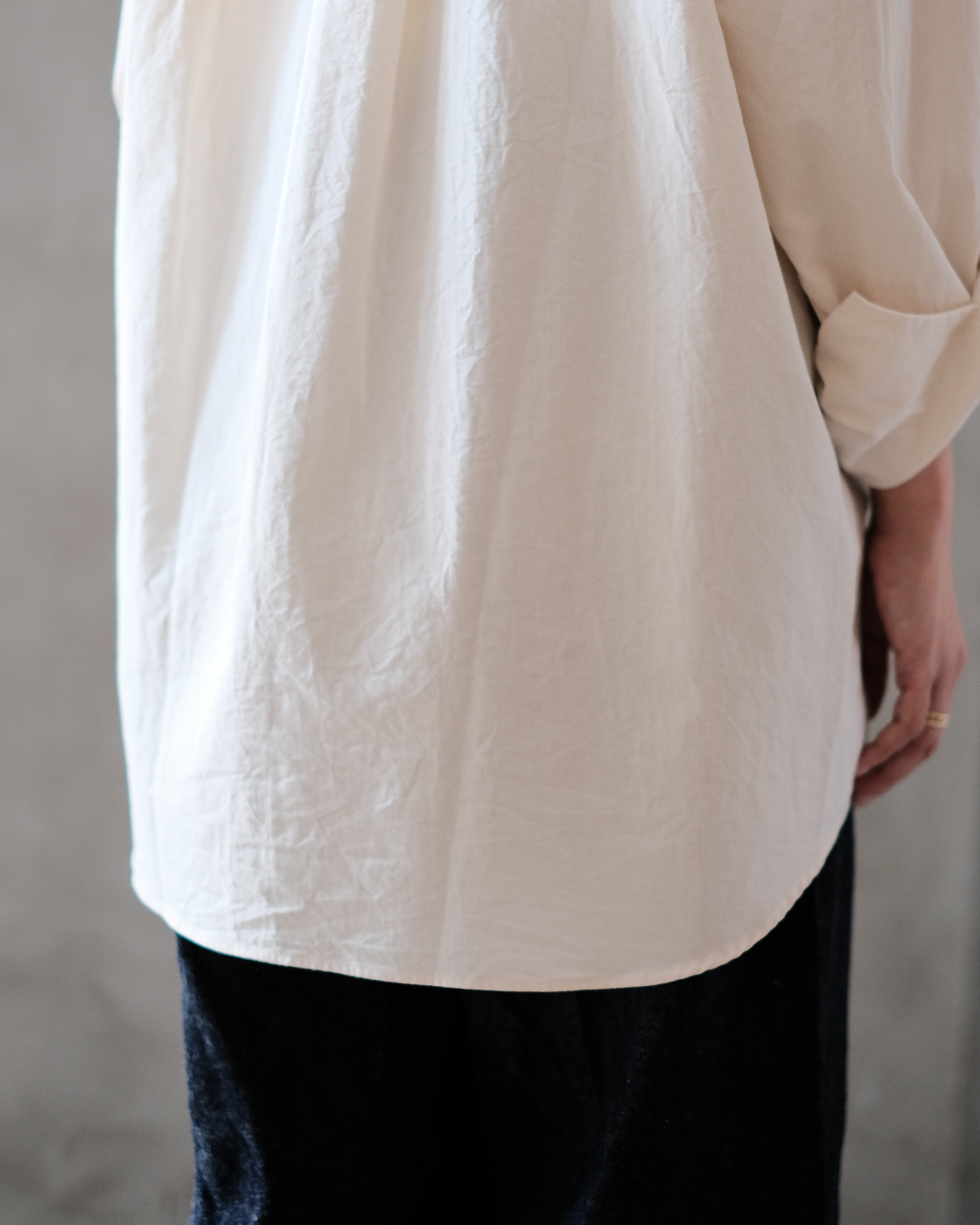 シンプルでありながら、袖を通すことで表れる立体感が虜となるシャツです。