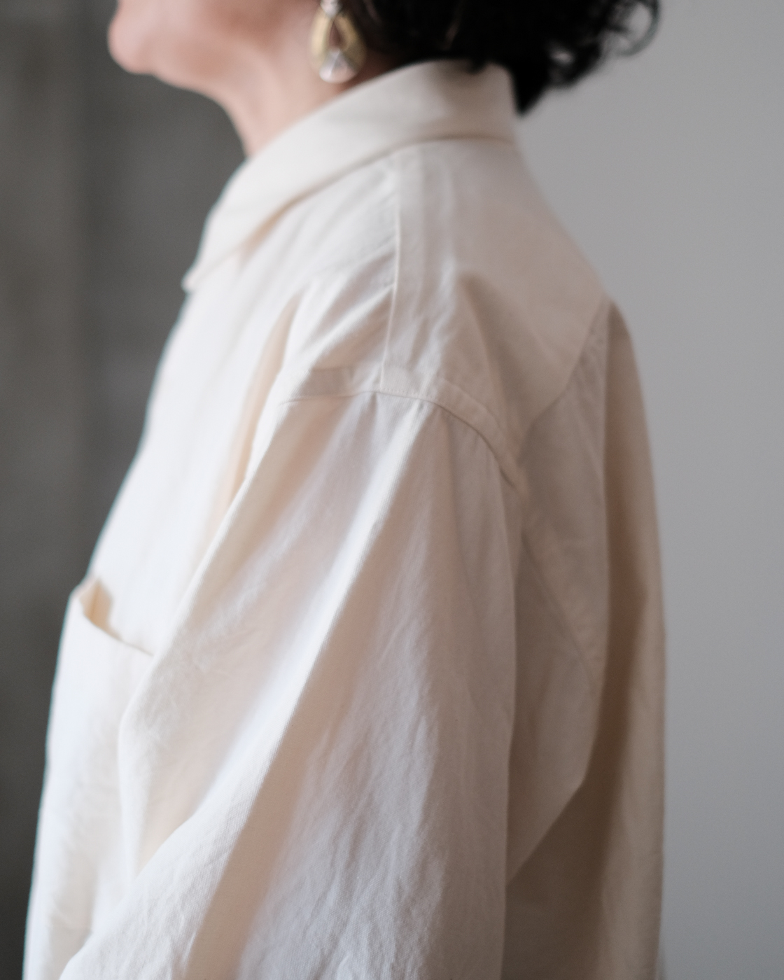 ややコンパクトな襟元に、リラックス感がある緩さが良いワイドシルエット。