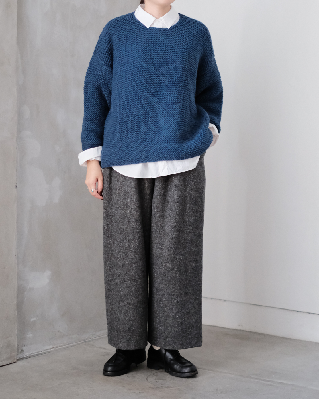 手作業で編まれているニットならではの魅力として捉えて頂けますと幸いです。