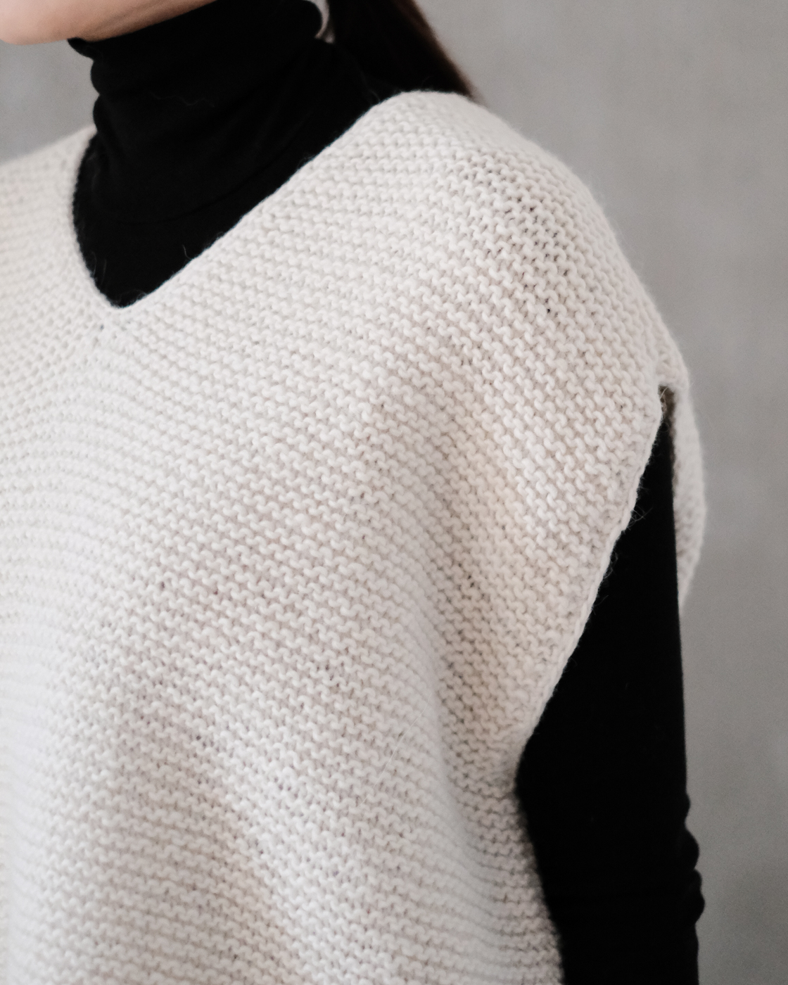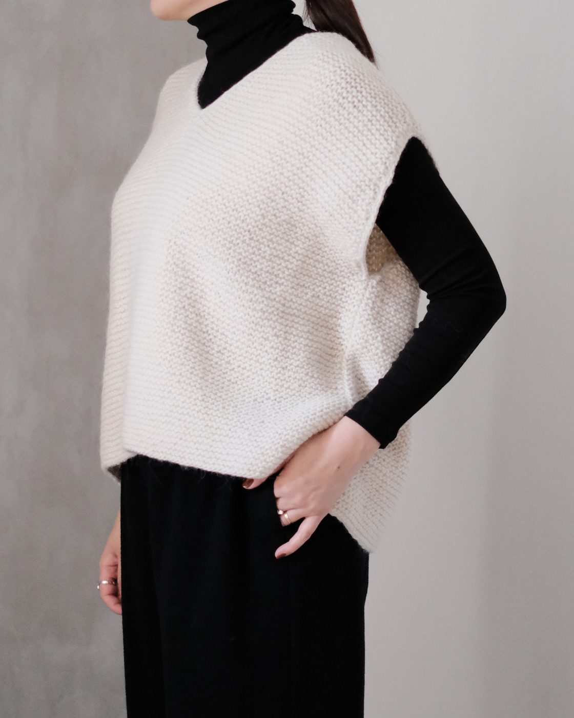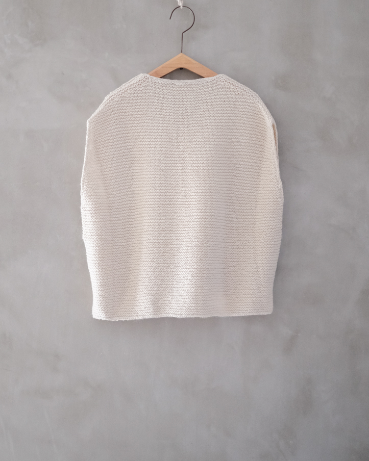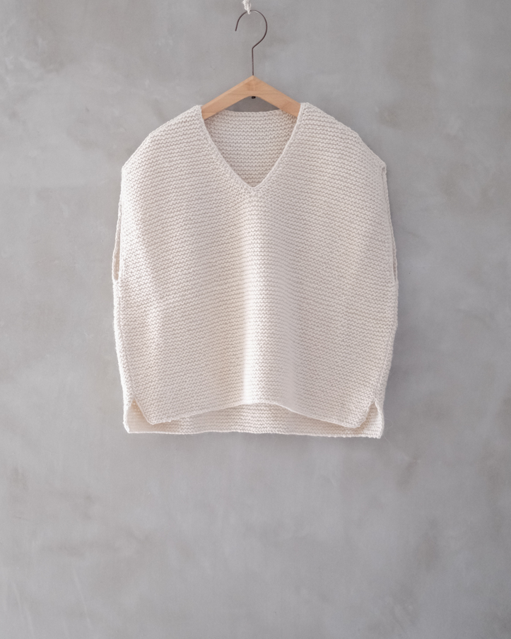 深めに開いたVネックの緩やかなベスト。