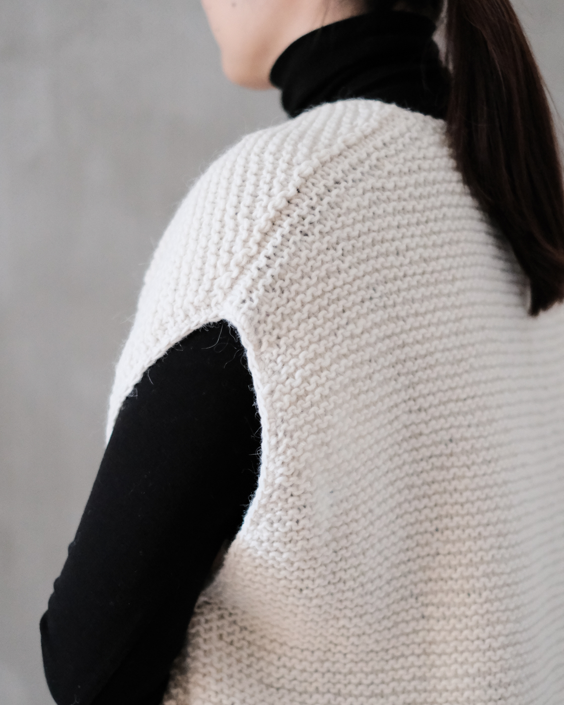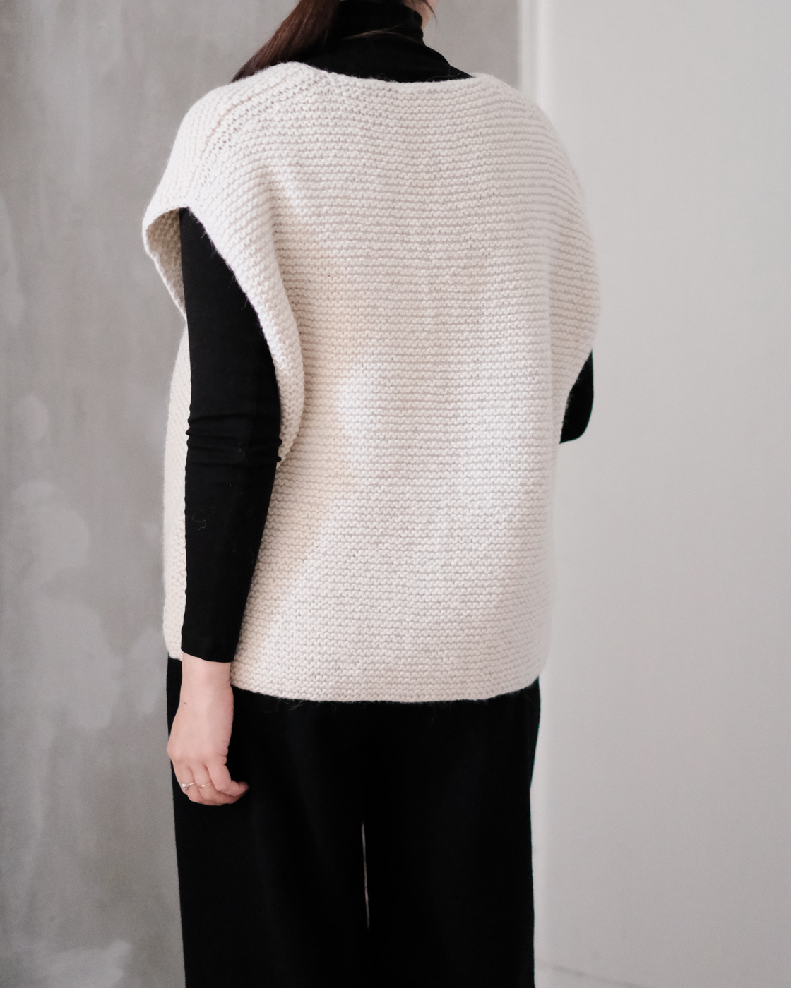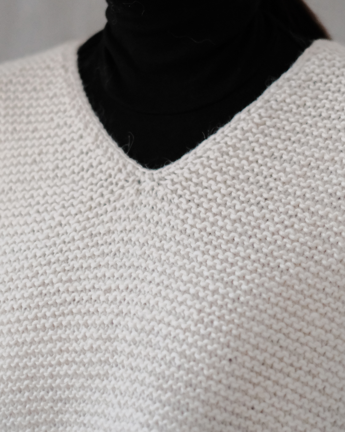深めに開いたVネックの緩やかなベスト。