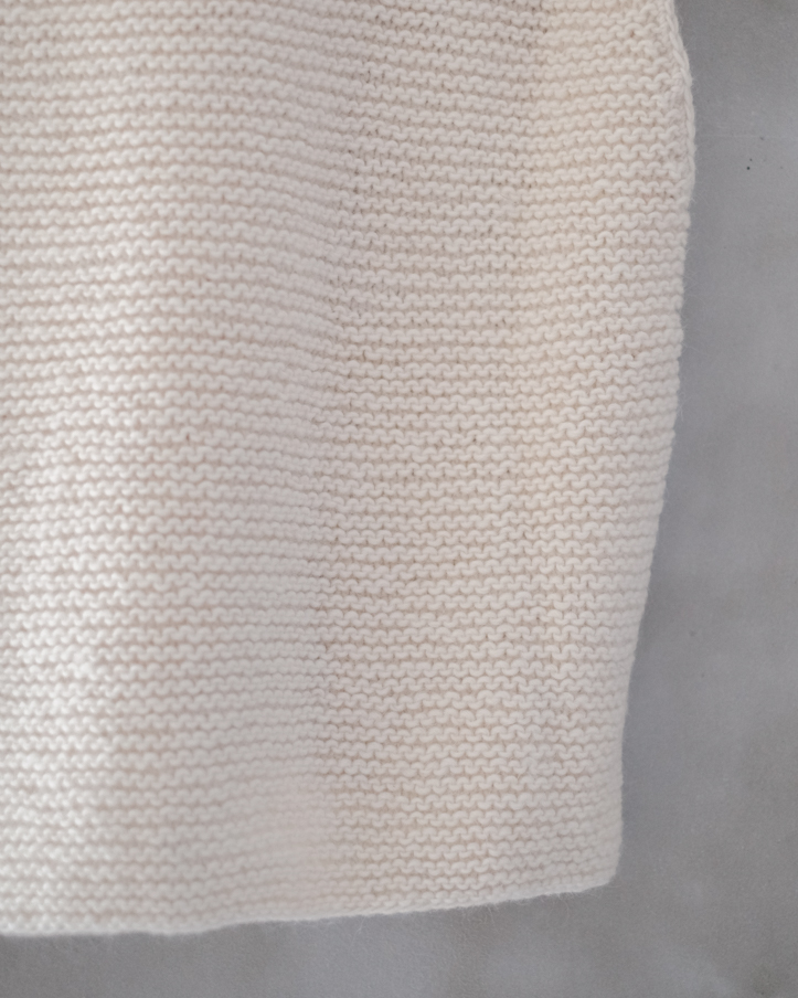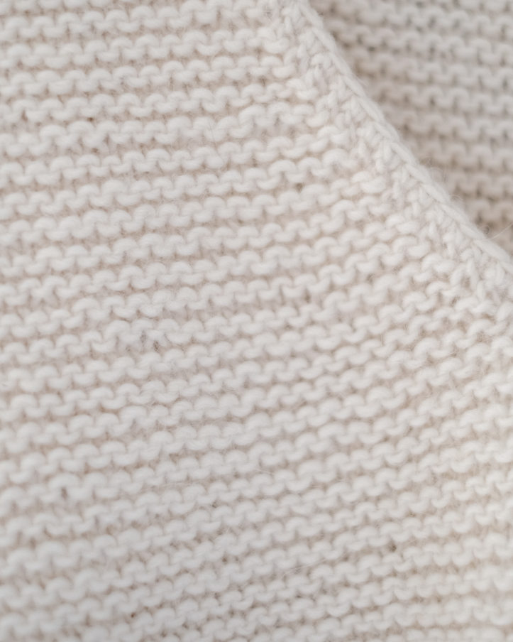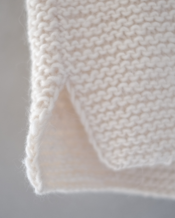 編み目が特徴的なガーター編みとなり、温かみある凹凸感が感じられます。