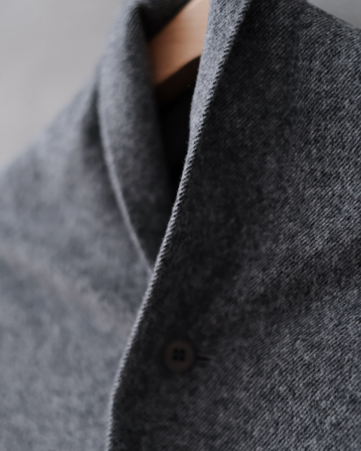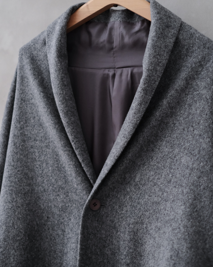 極上の滑らかさがあるラムウールのベロアを使用した新型となる[ウールベロア ショールコート]のご紹介です。