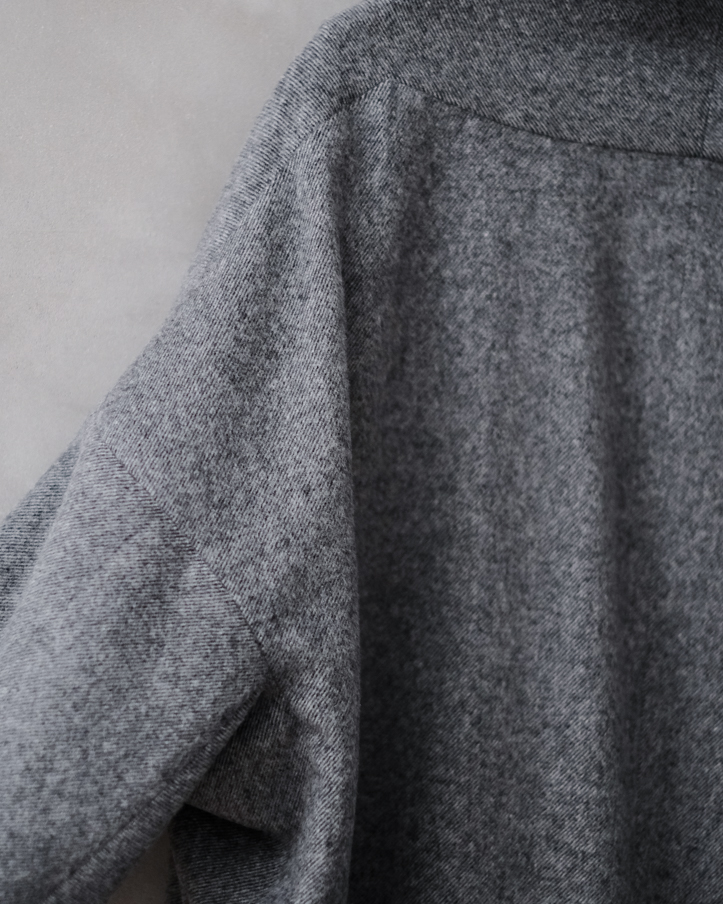 ゆったりとした締め付け感のない身幅に、柔らかい生地の落ち感を計算して作られたドロップショルダー。