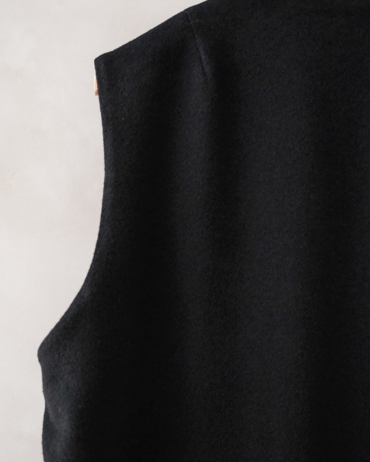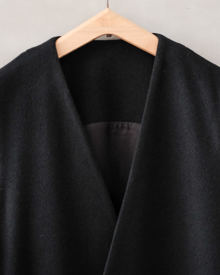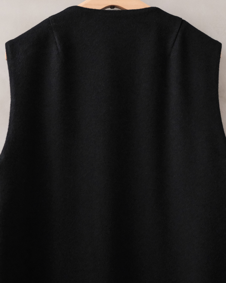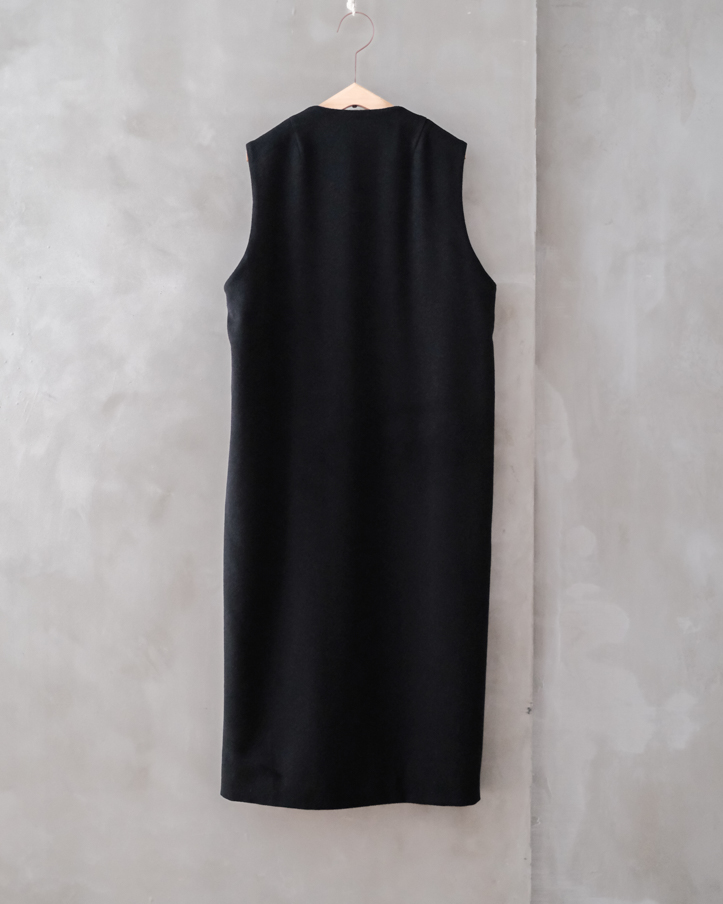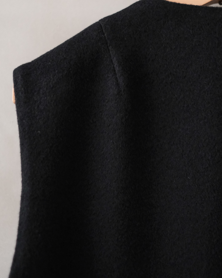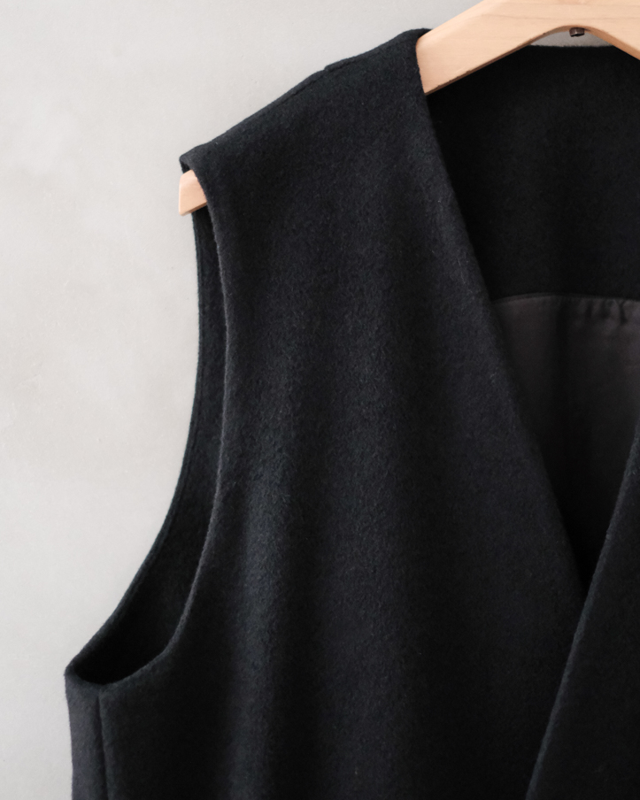 新型のVネックのロングベストコートです。