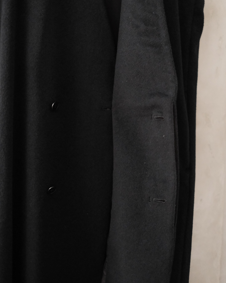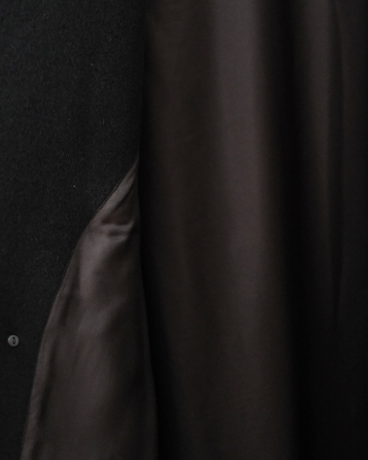 フロントはダブルボタンになっており、生地がしっかりと重なるような作りなので、