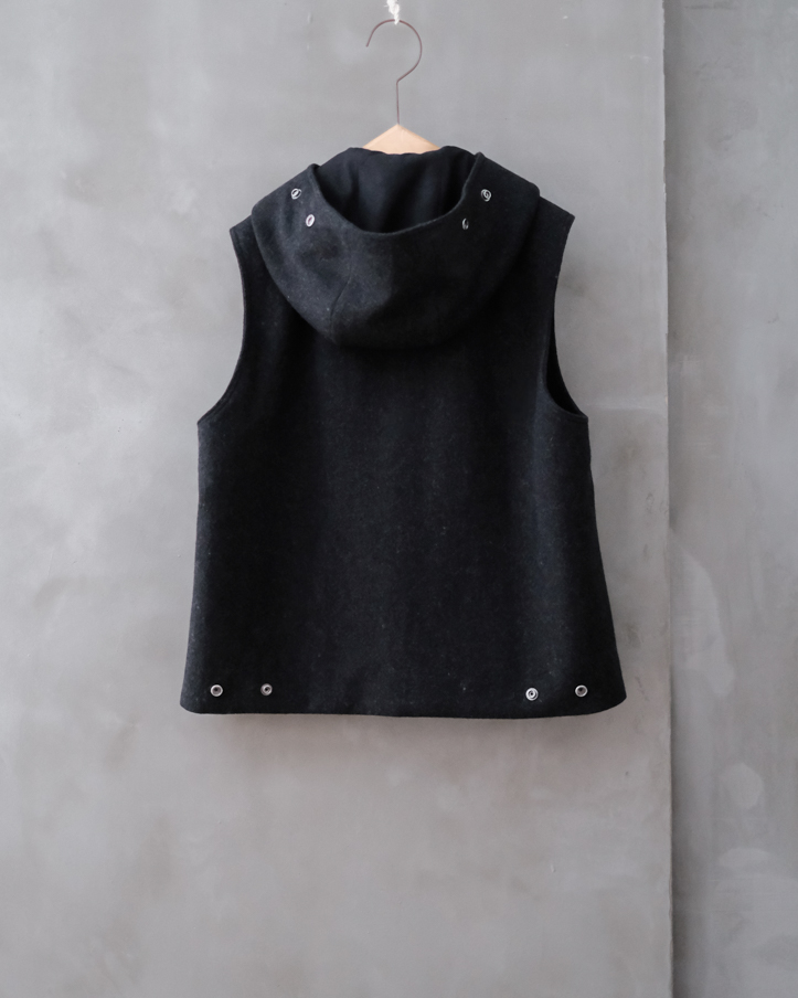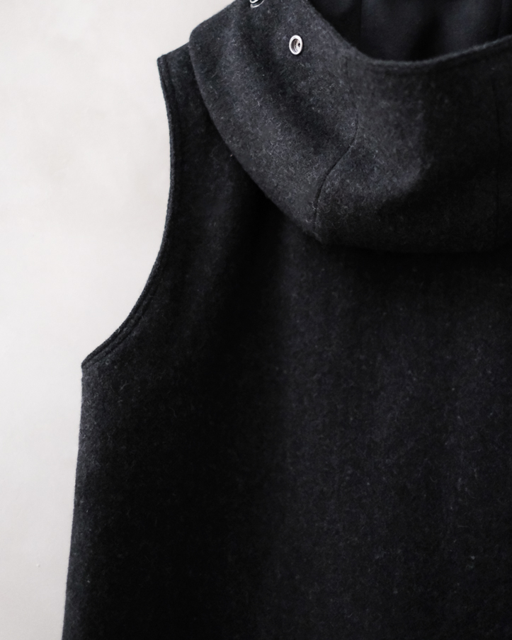 このベストの魅力でもあるフードのデザインがアクセントとなり、より立体感あるシルエットに見せてくれます。