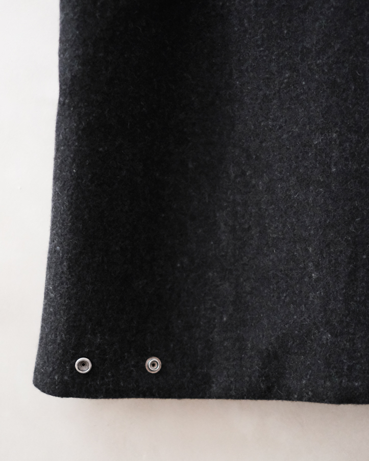 フロントはスナップボタンで真冬でも着脱がしやすく、裾にもスナップボタンが施されておりますので、