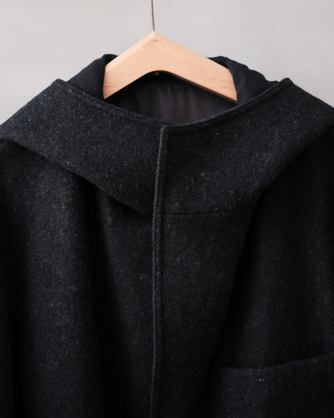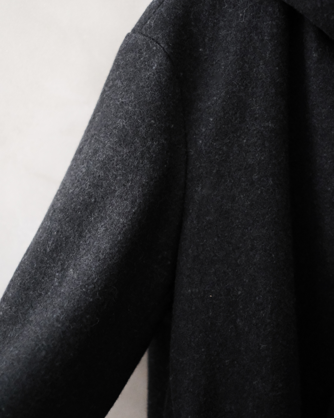 全体的にゆったりとした作りでありながら、柔らかいメルトン生地ならではの落ち感があり、