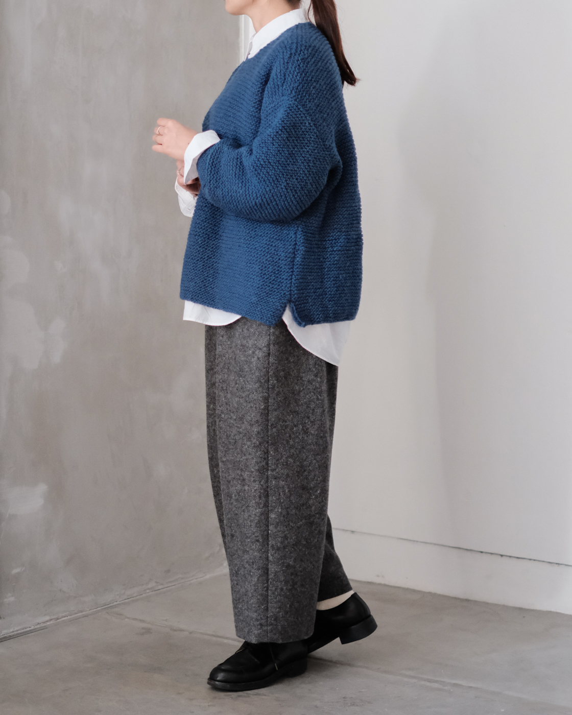 ワイドシルエットですが、生地に柔らかさもあるので落ち感があり、