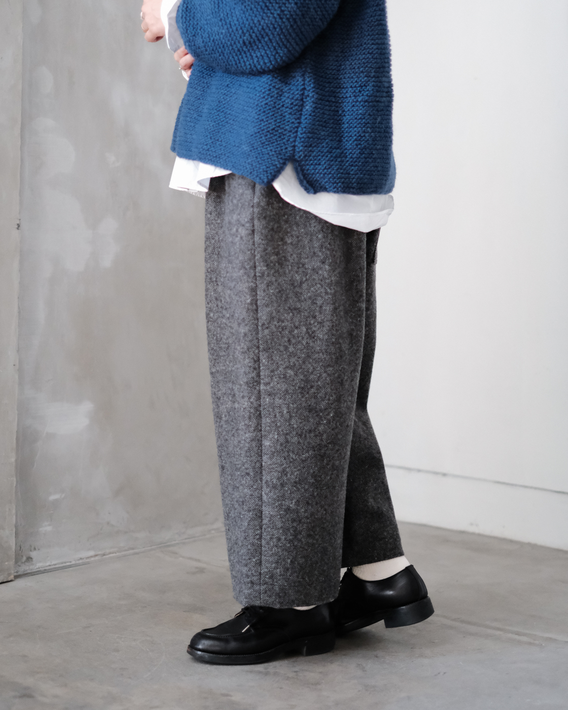 硬い、重いという印象のメルトンの概念がガラッと変わるゴーシュならではの特別な[ソフトメルトン ワイドパンツ]が届きました。