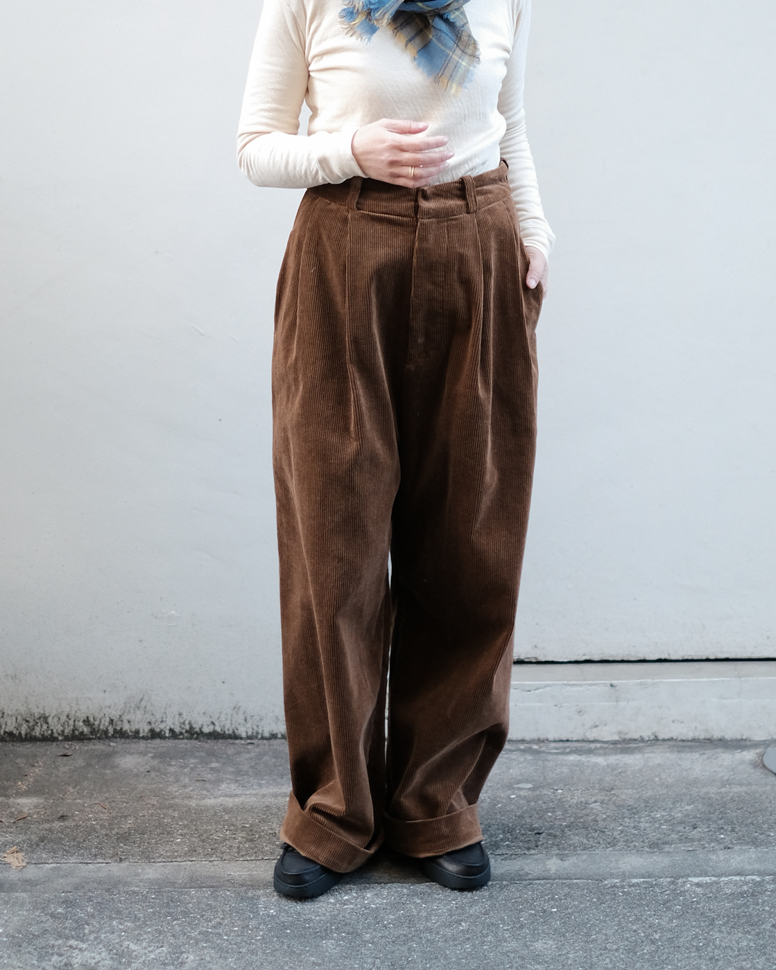 たっぷりと生地を使用しておりますが、重さを感じる事もなくリラックスして穿いていただけます。