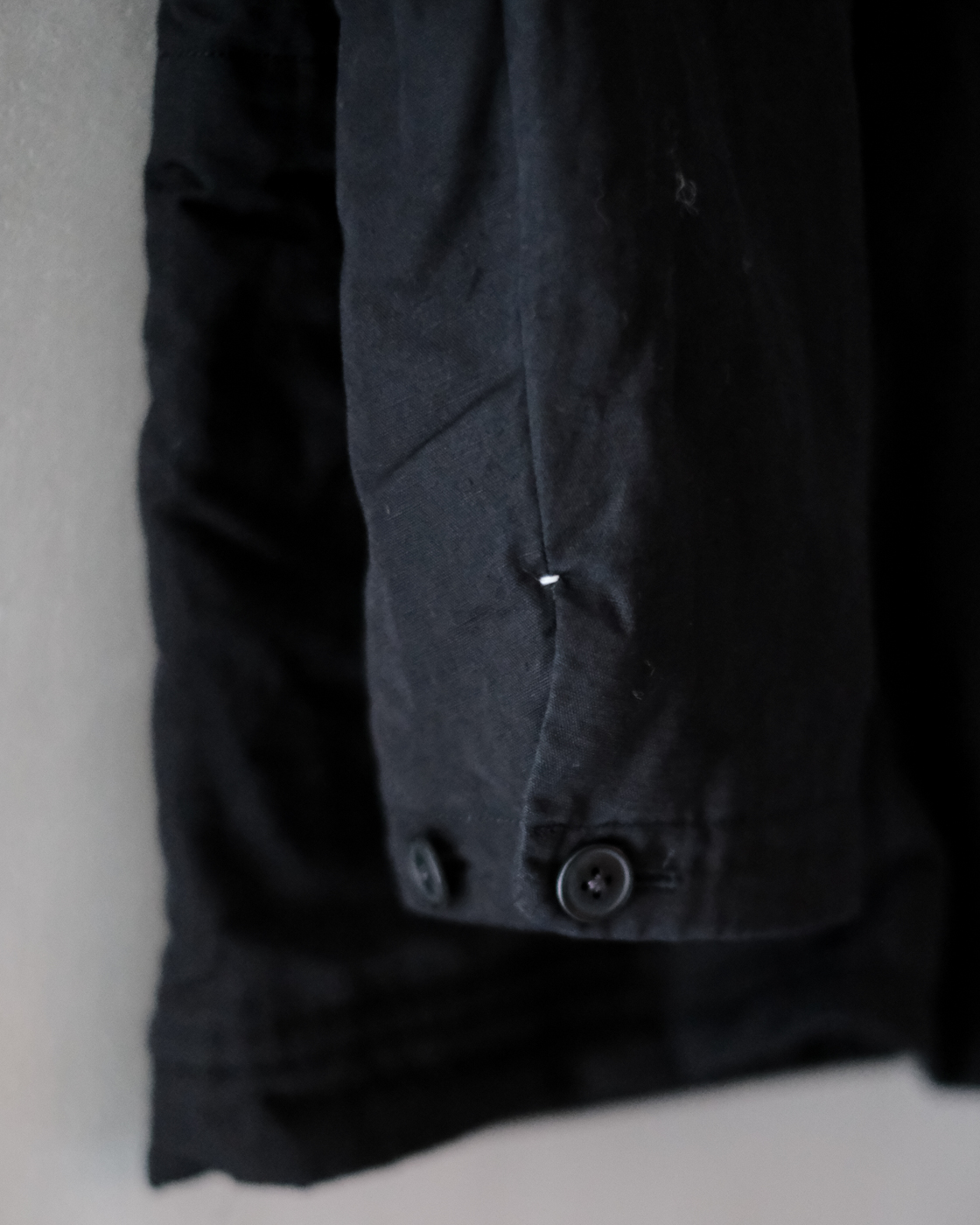 コットンの柔らかさをベースにリネンのハリとシャリ感が混じり合い、ワークな要素を感じる独特の生地感が、