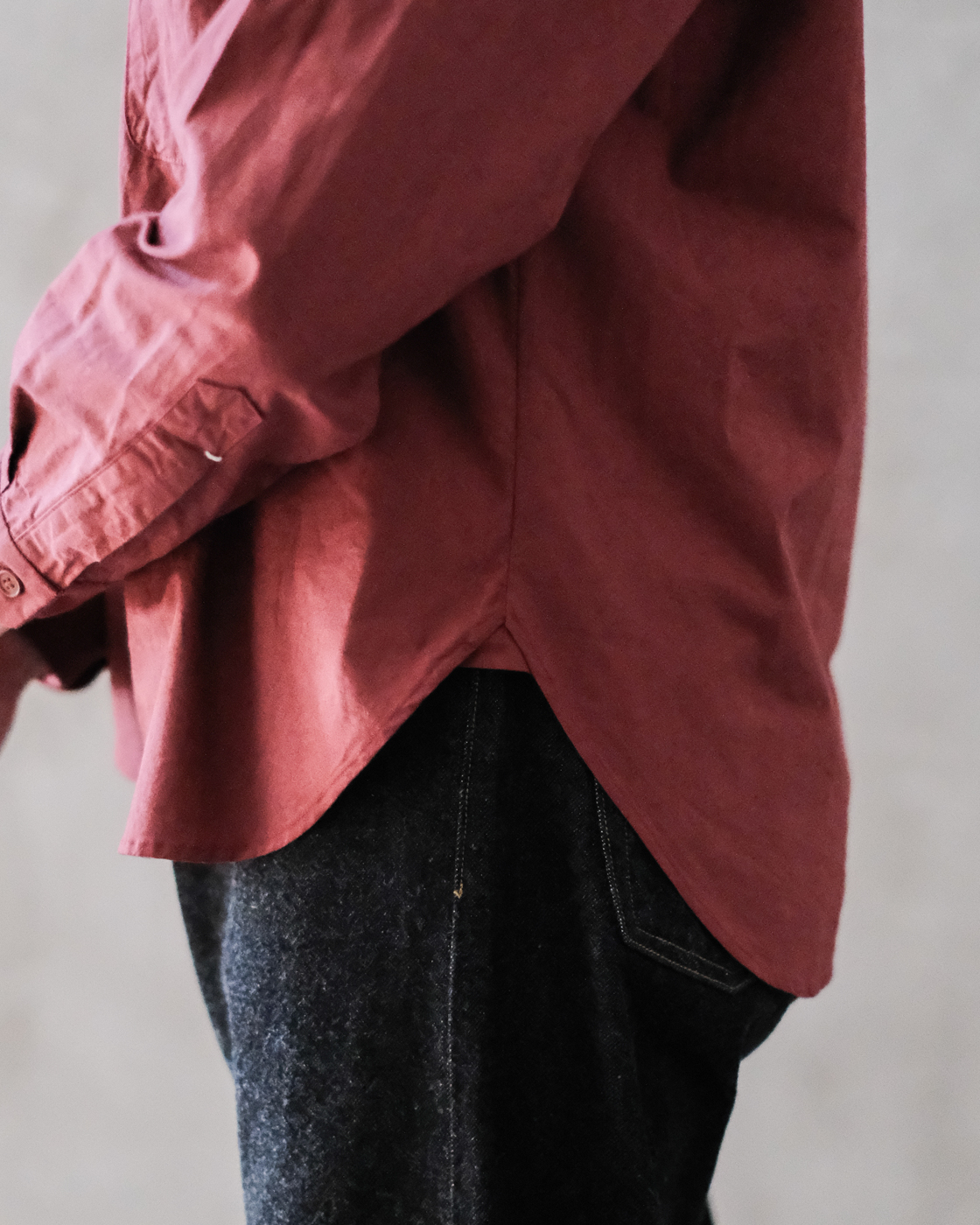 コットンの柔らかさをベースにラミーの軽やかなさとハリ感混じり合ったワークな要素を感じる独特の生地感が、