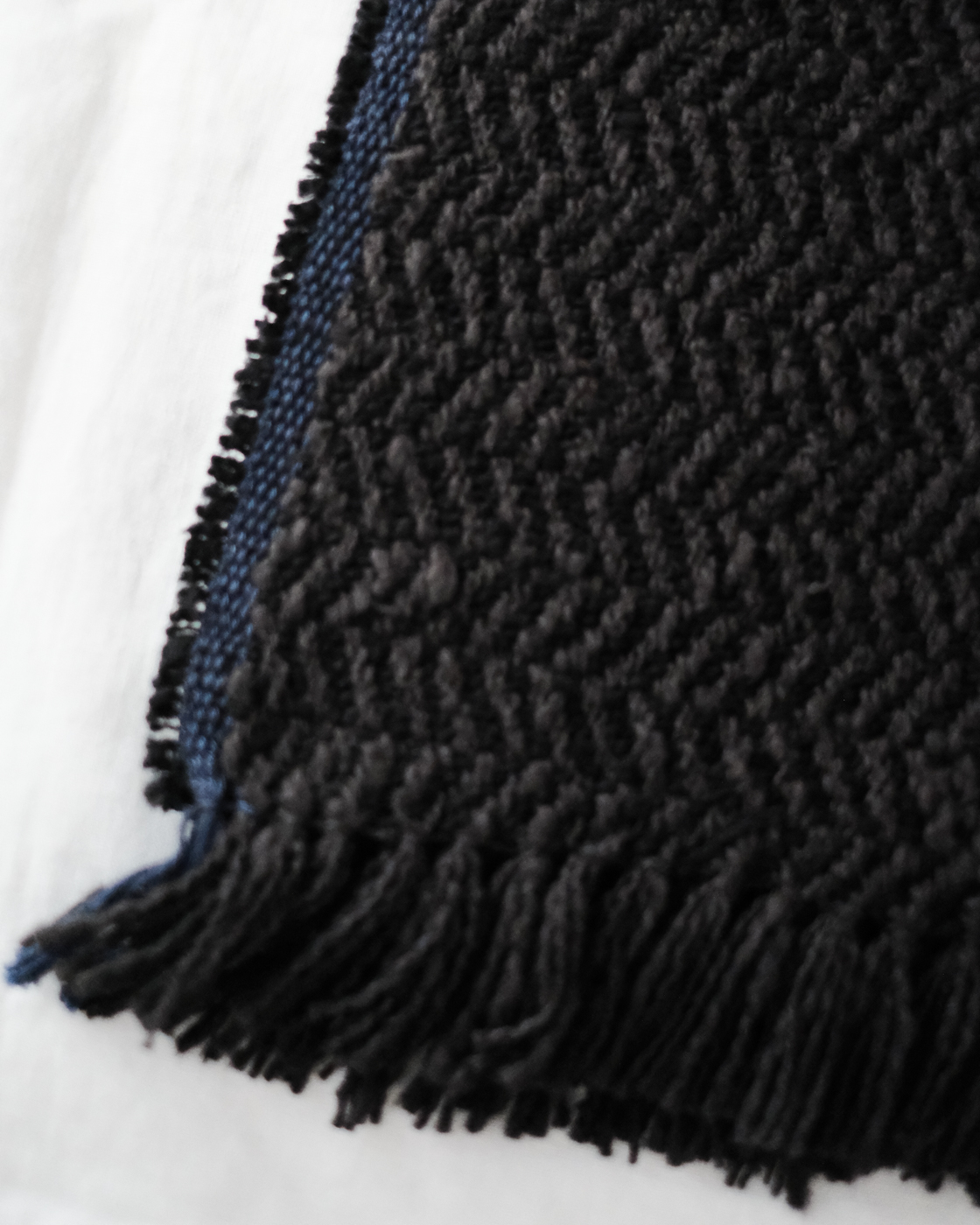 ・ガラ紡の原料は落ち綿という短い繊維を使用している為、使い始めは細かい繊維が付着していることがありますが、使用を重ねると自然に落ちていきます。