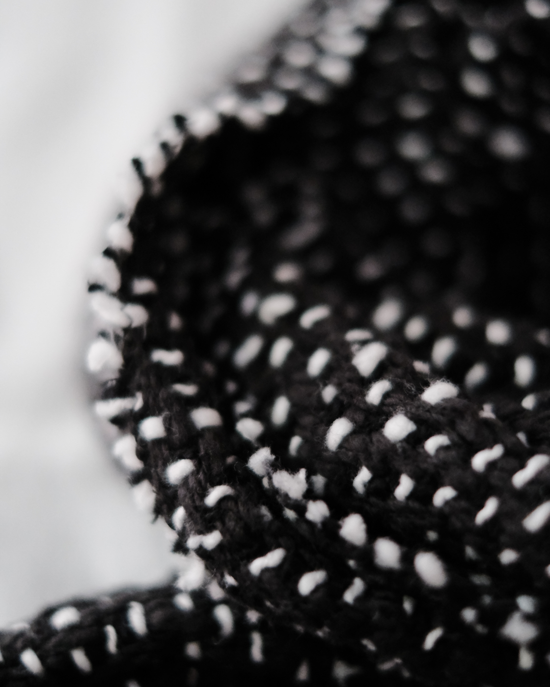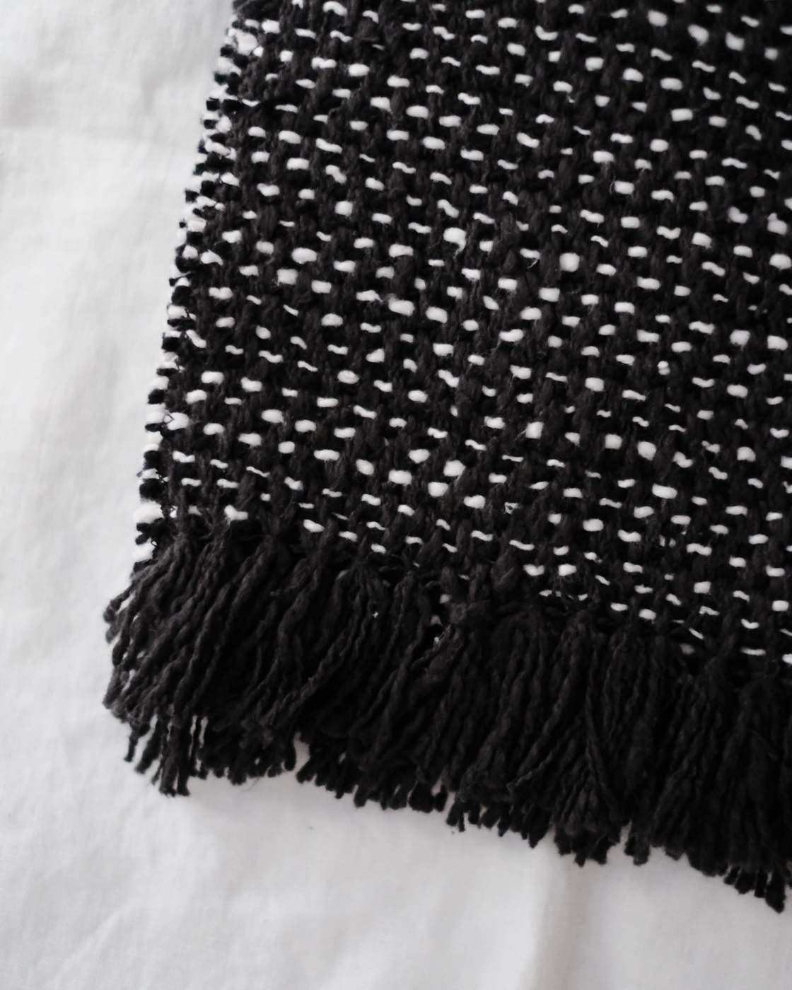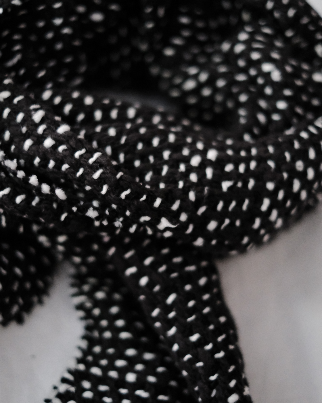 ガラ紡ならではの彩りが美しい織り柄がさり気ない華やかさとなり、さらっ巻くだけで印象的な雰囲気にしてくれます。