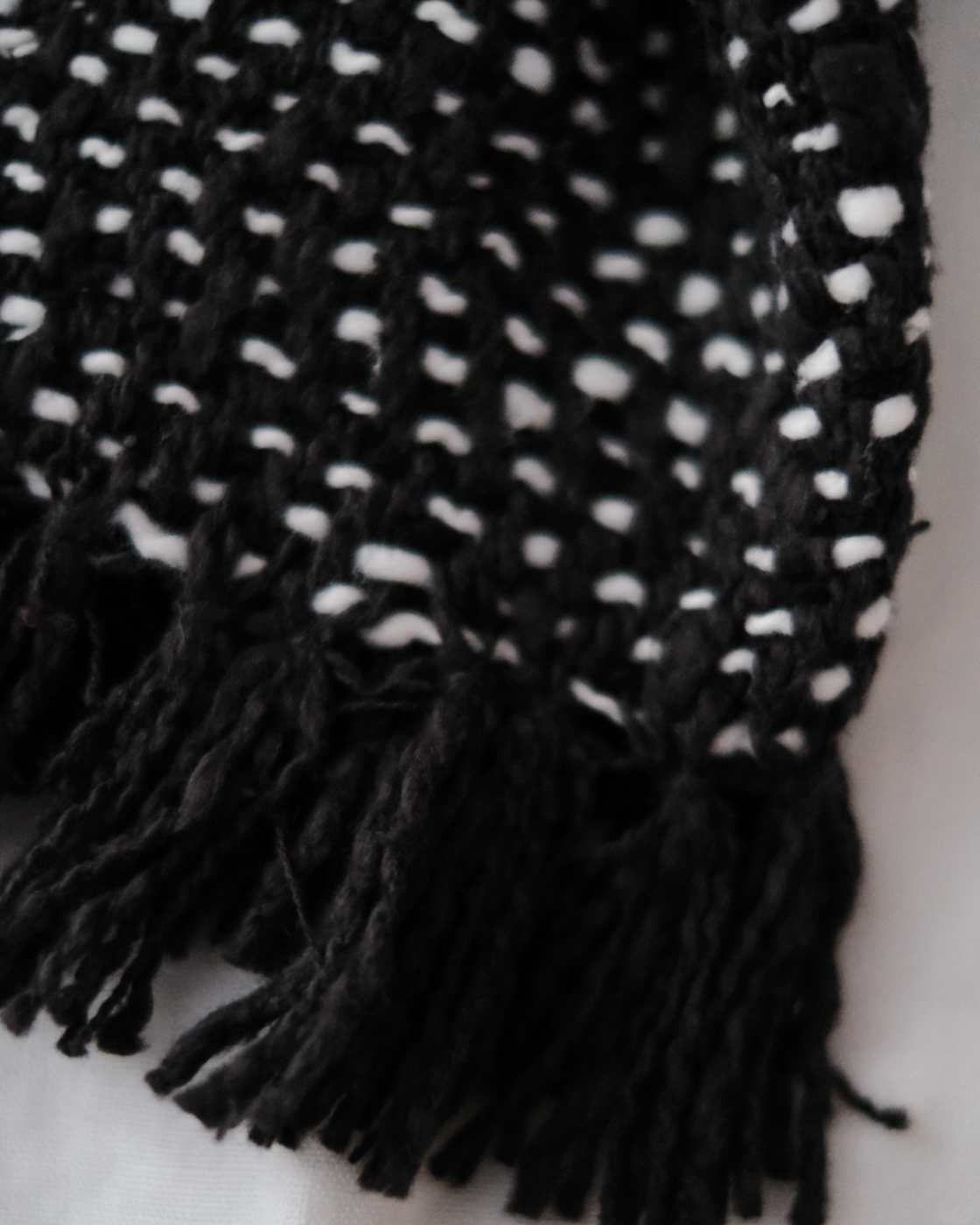 首元にコンパクトに収まってくれるマフラーサイズのストールです。