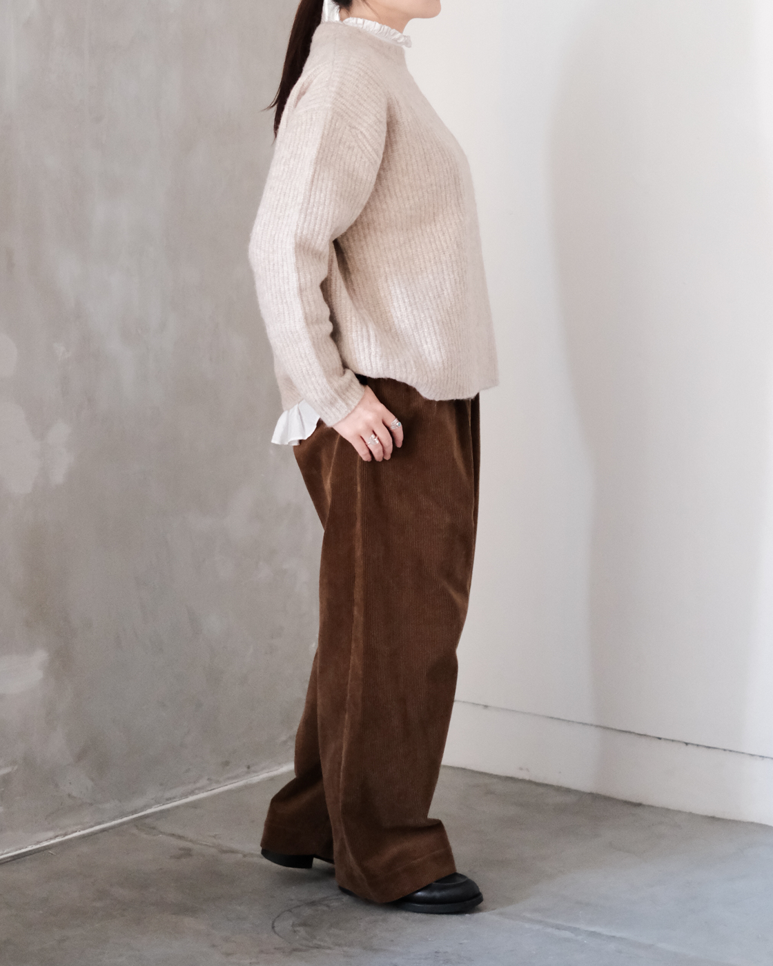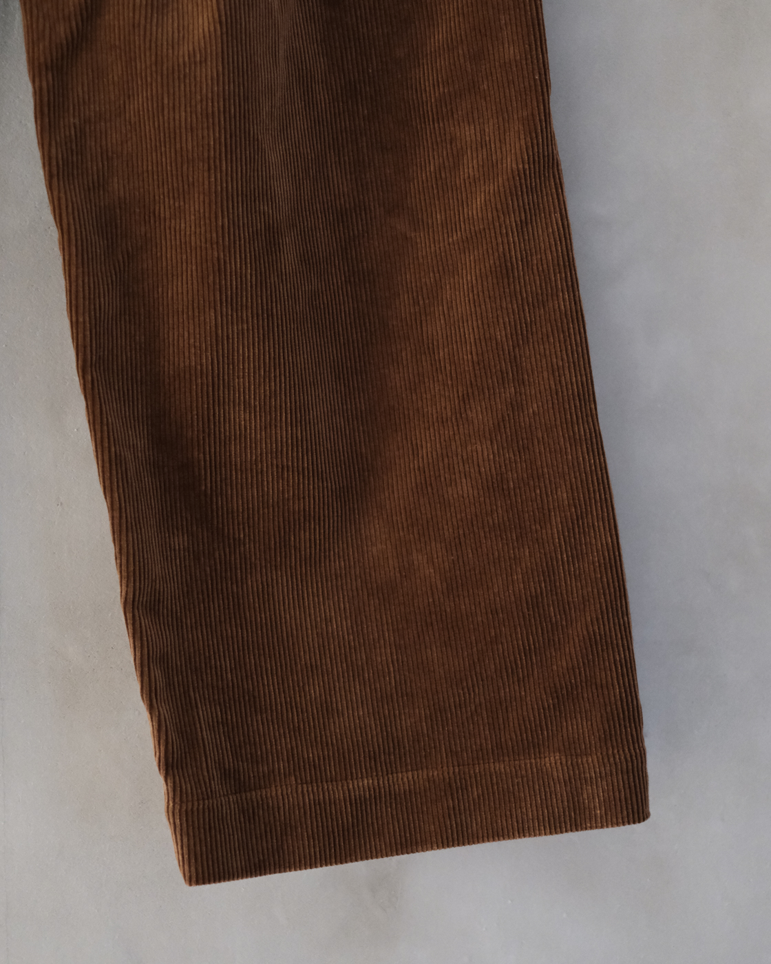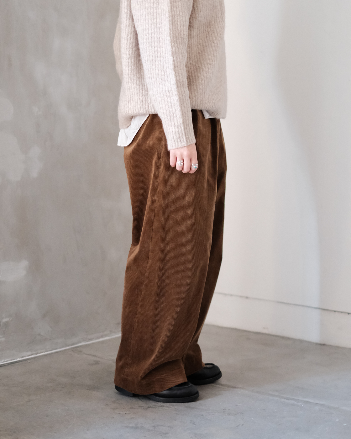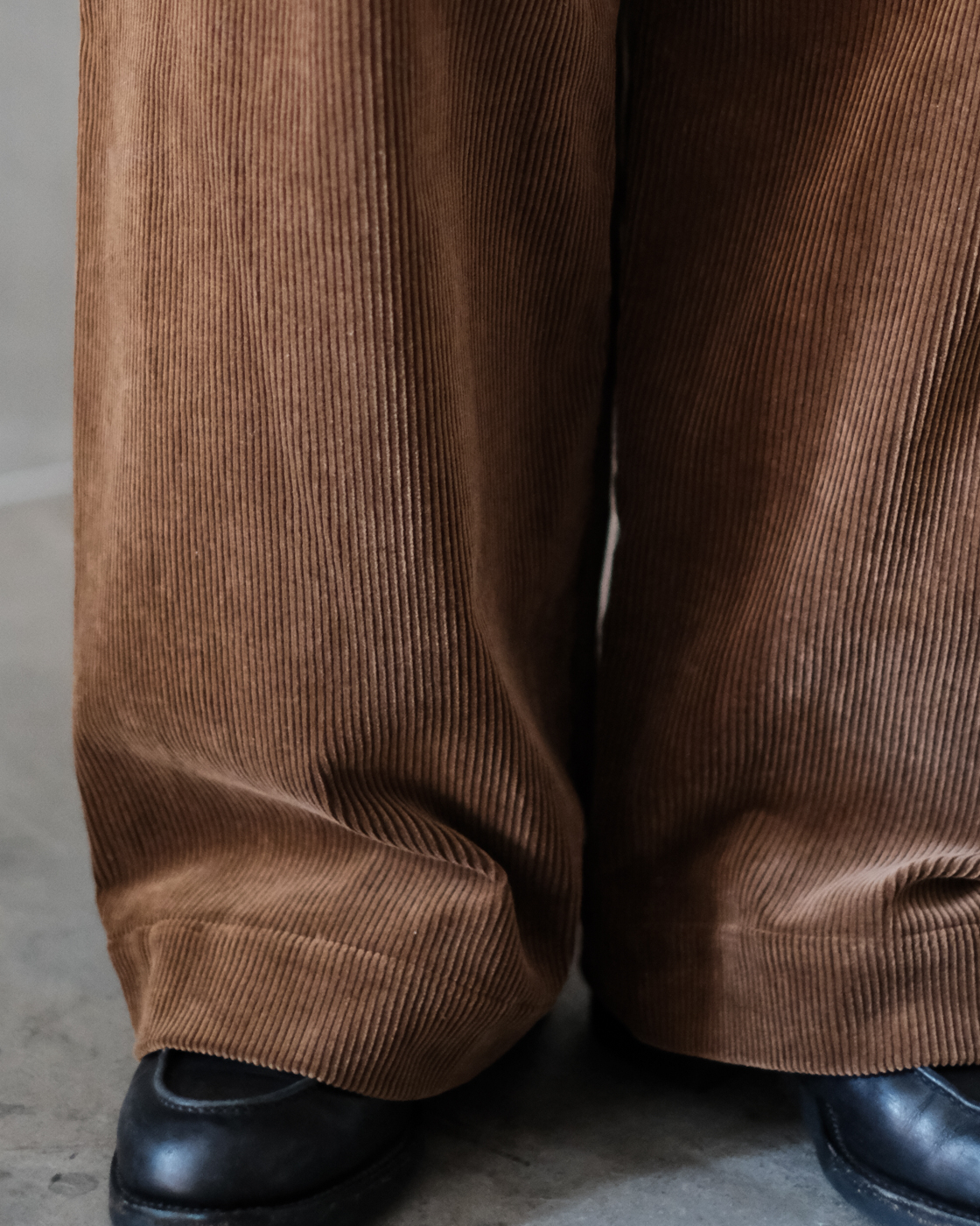 柔らかいコーデュロイ生地ならではの落ち感が相まって、太さがありつつも重さを感じない存在感あるシルエット。