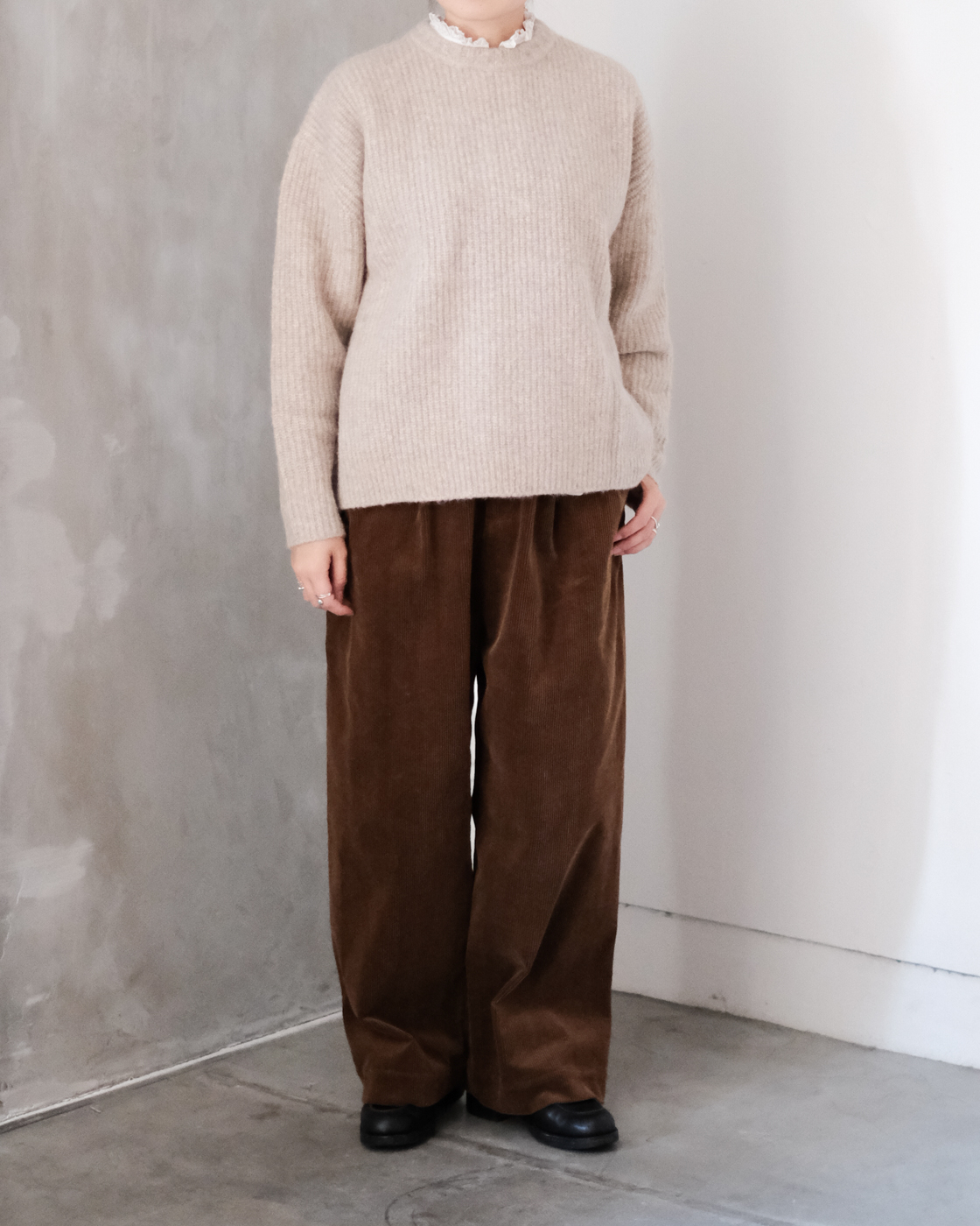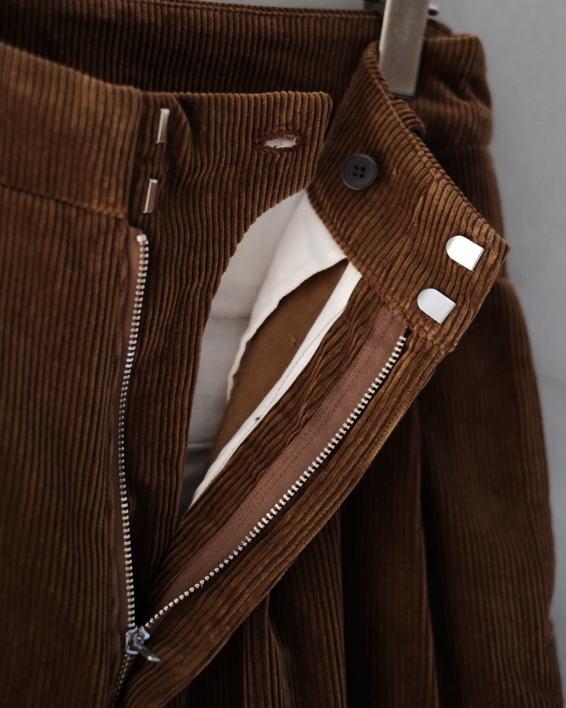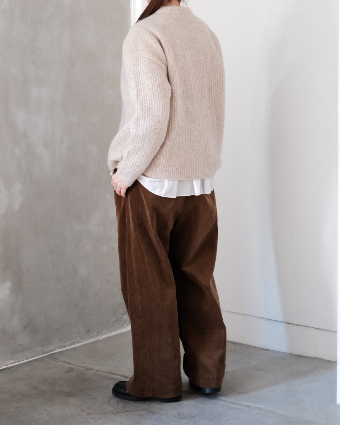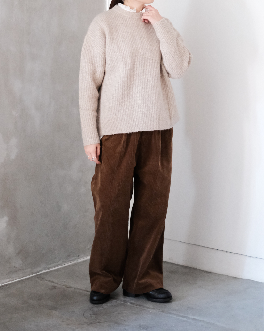 柔らかいコーデュロイ生地ならではの落ち感が相まって、太さがありつつも重さを感じない存在感あるシルエット。