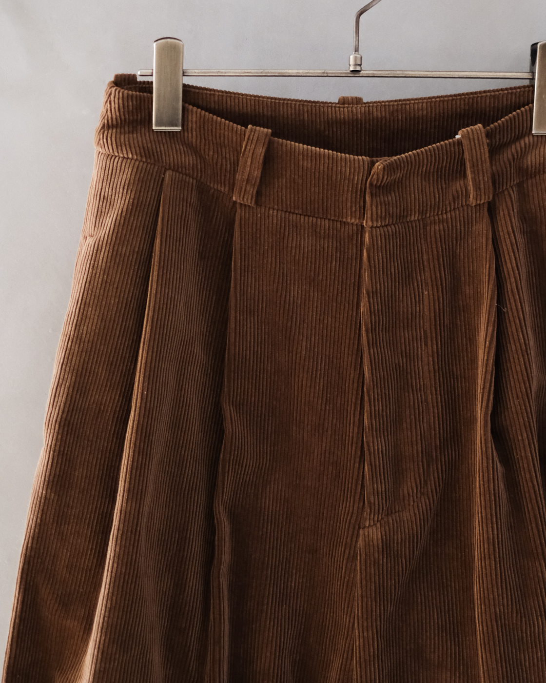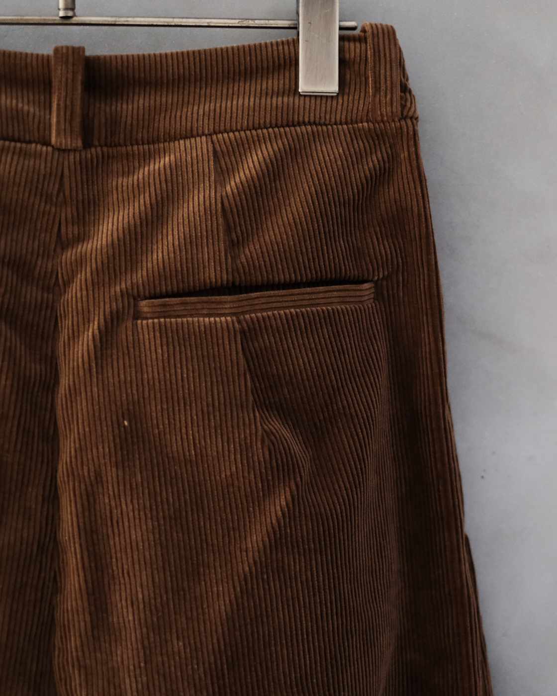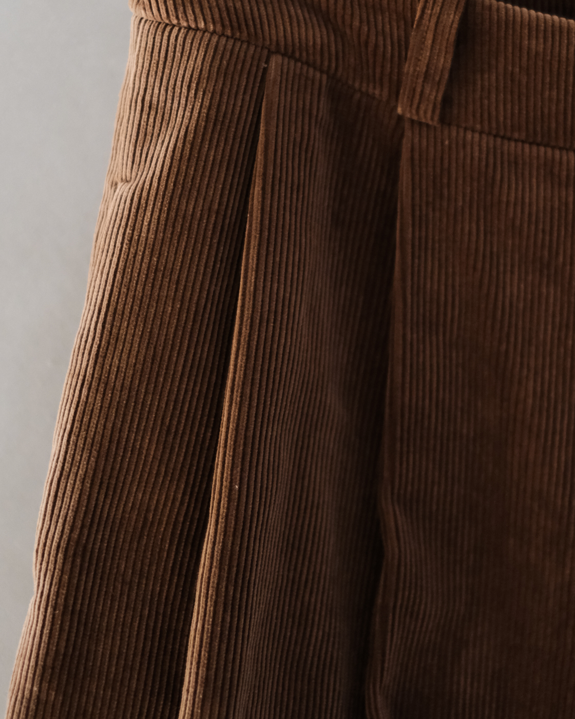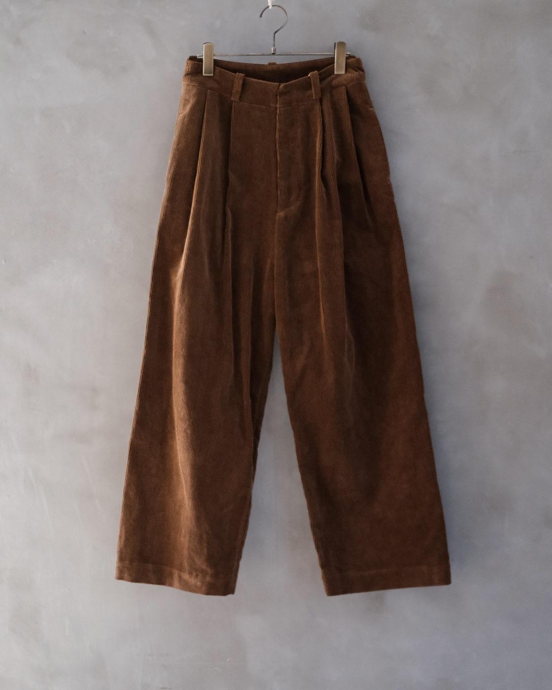 柔らかいコーデュロイ生地ならではの落ち感が相まって、太さがありつつも重さを感じない存在感あるシルエット。