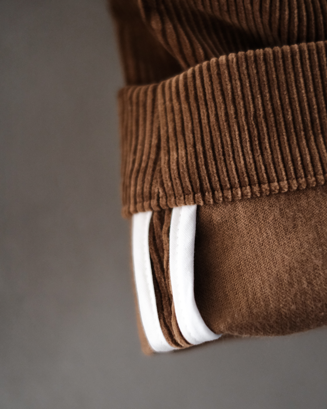 細目の畝が上品で繊細な雰囲気もありつつ、クラシカルな趣きを感じて頂けるR&D.M.Co-ならでは。