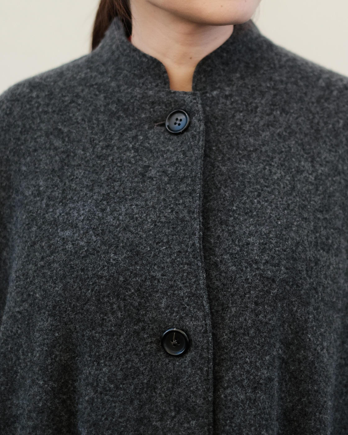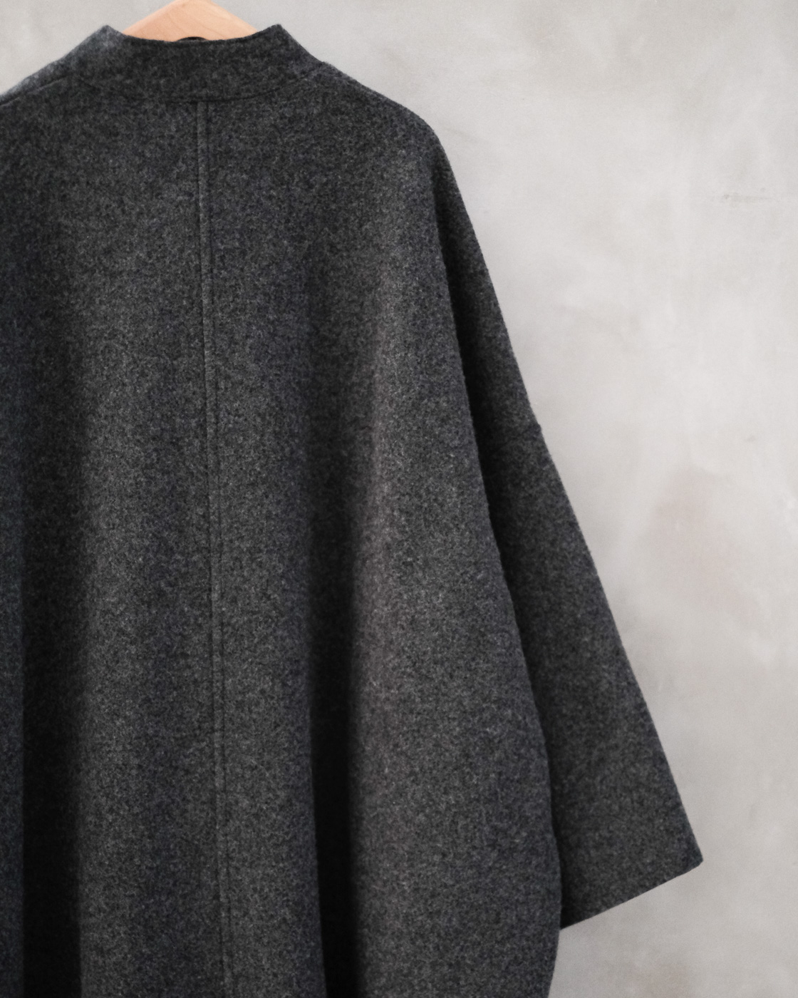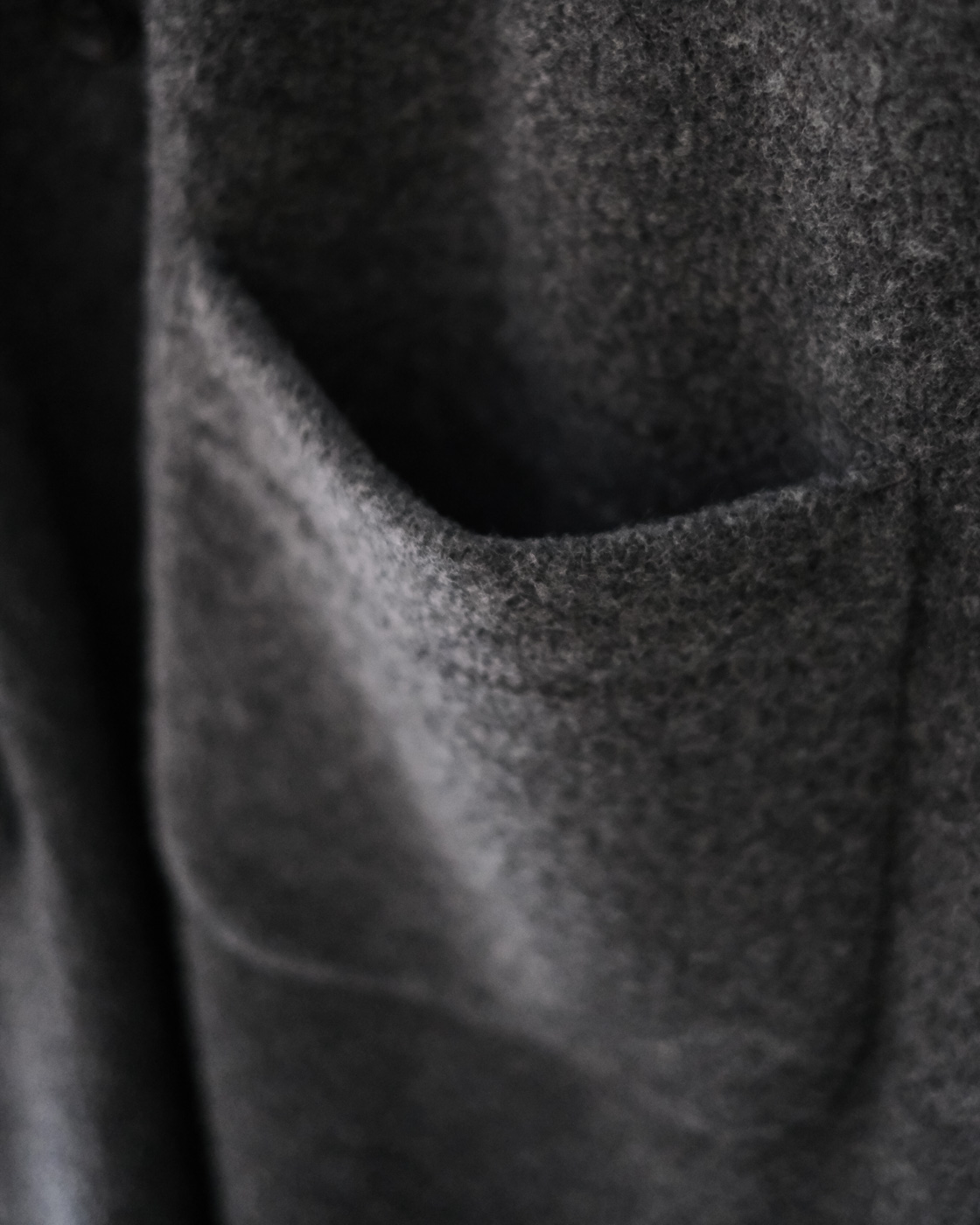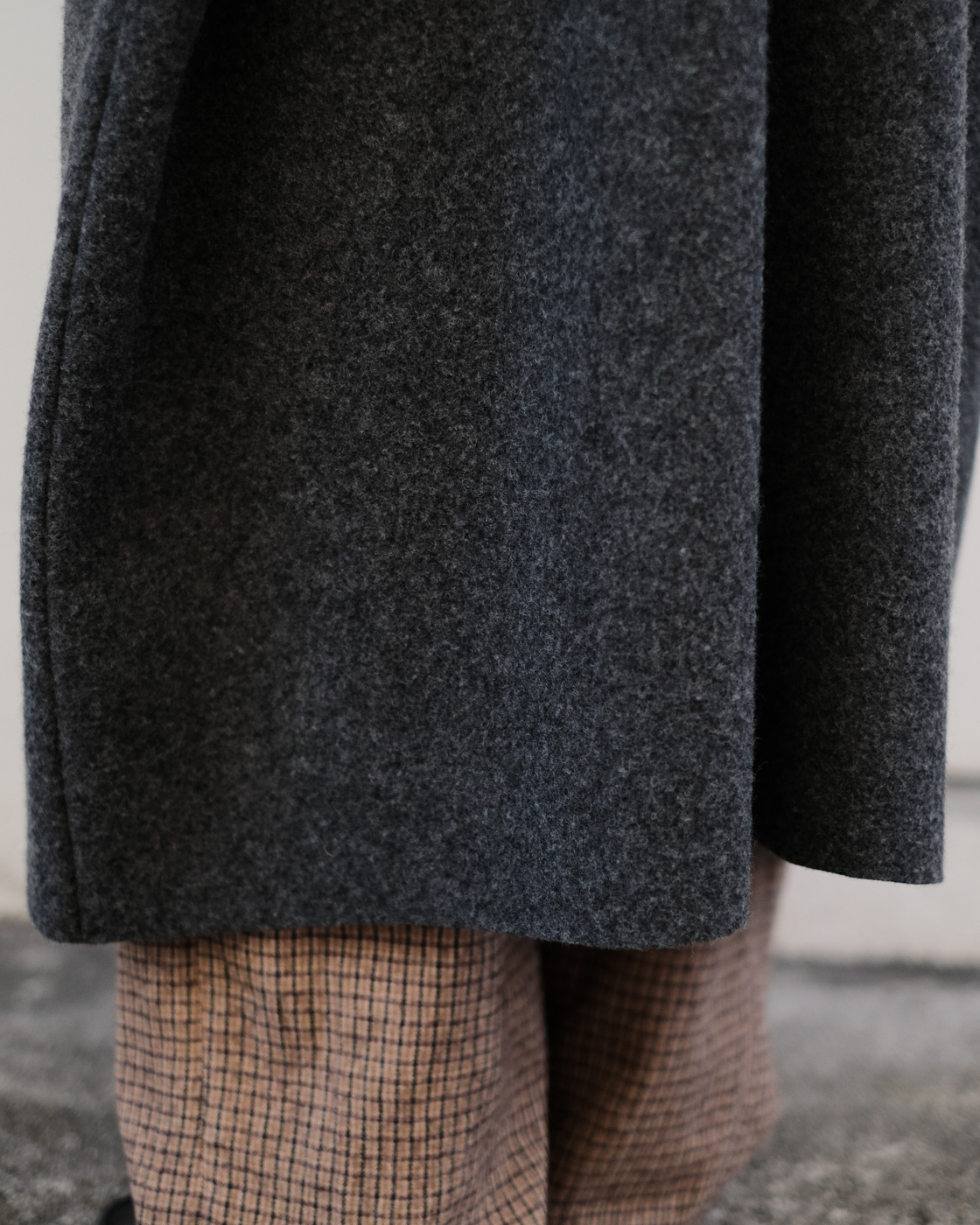 肉厚なウール100%を圧縮して製作された、1枚仕立てコート。