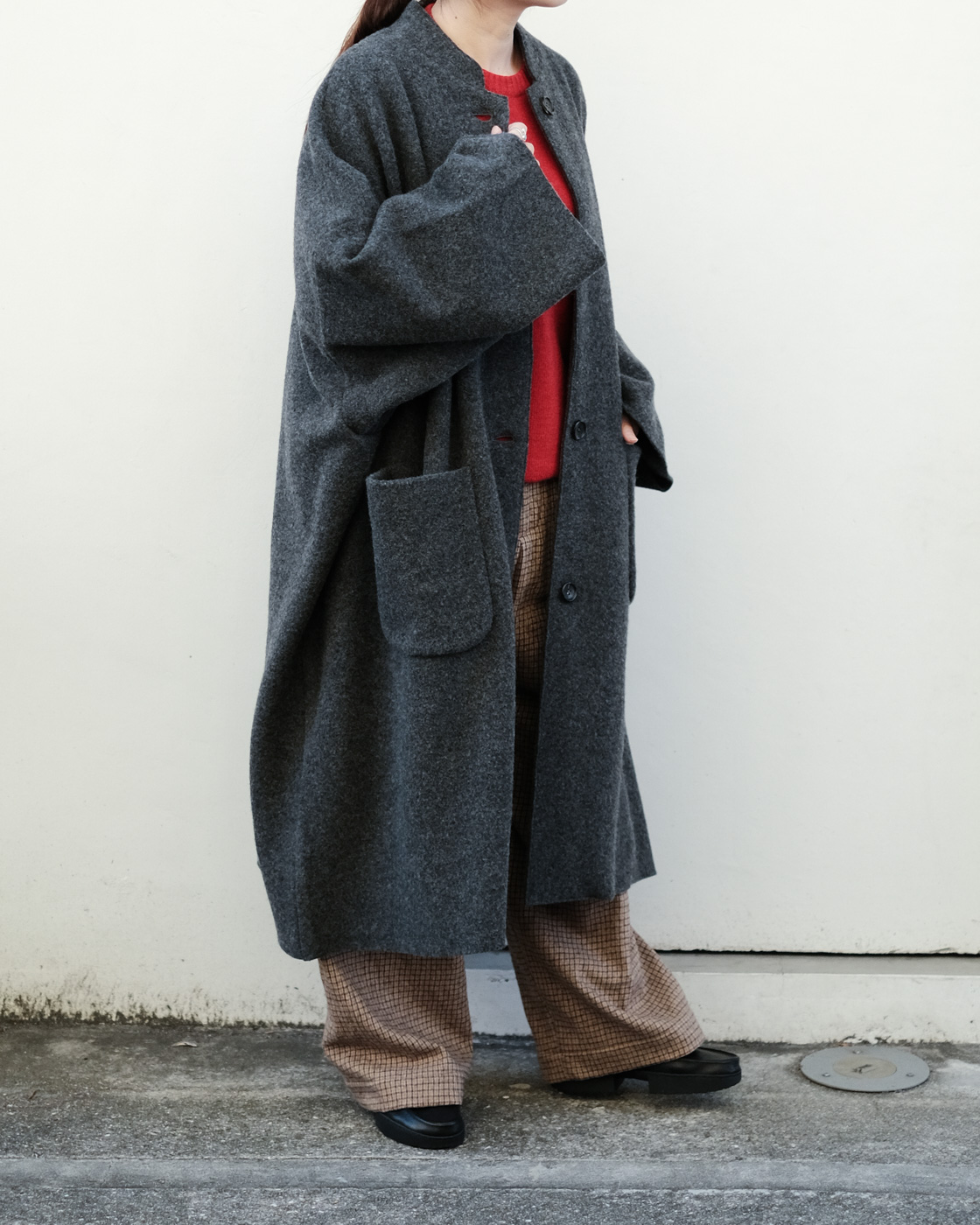 上質なウール生地をたっぷりと使用して製作されたOVER SIZE COAT。