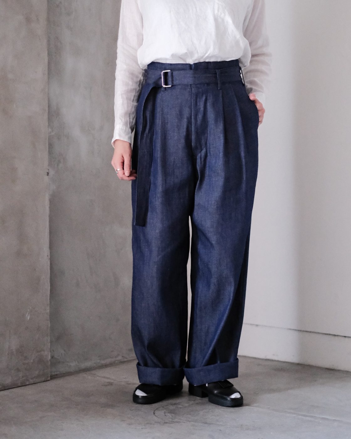 サラッとした肌触りで生地が馴染みやすいので、落ち感もあり野暮ったくならないのが魅力です。