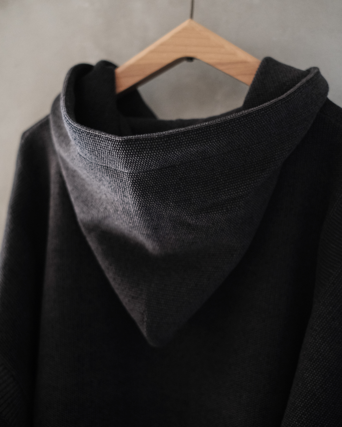 色と編み柄の濃淡で重厚感がありつつも、軽やかな印象にみせてくれる春を迎えるのにふさわしいニットパーカーです。