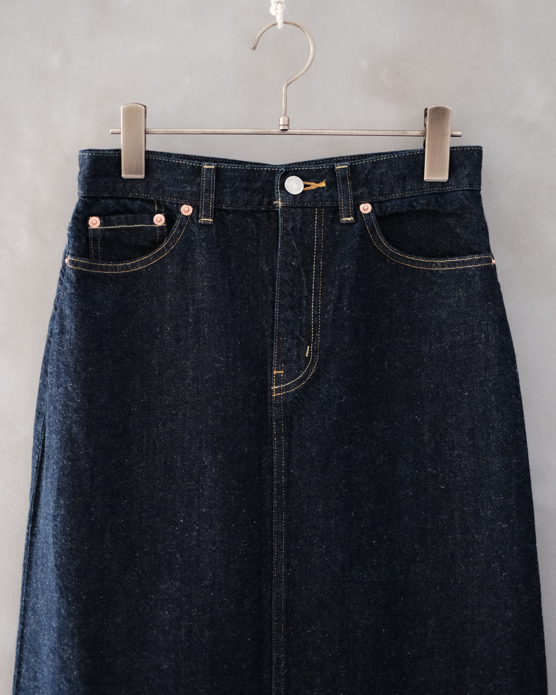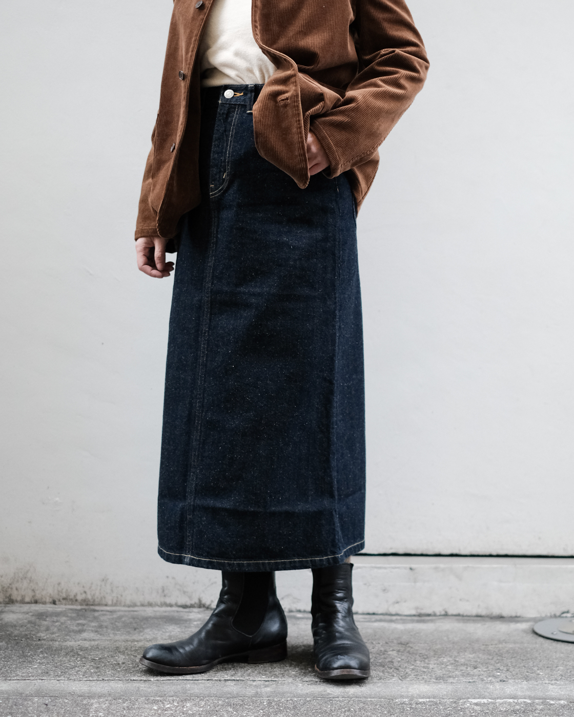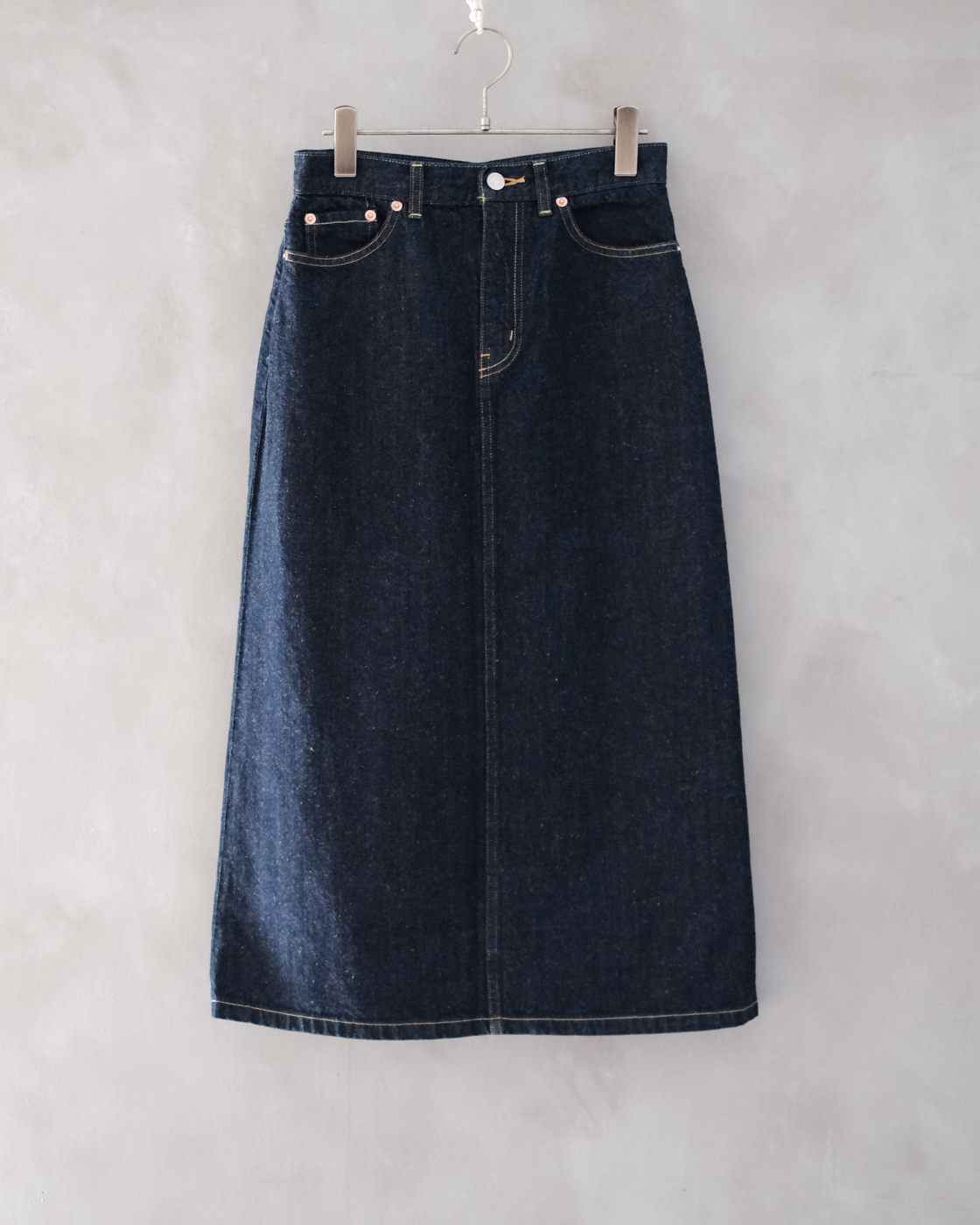スタンダードに穿いていただけるデニムスカートだけに、トップスの雰囲気を変えながら様々なスタイリングを楽しんでいただけます。