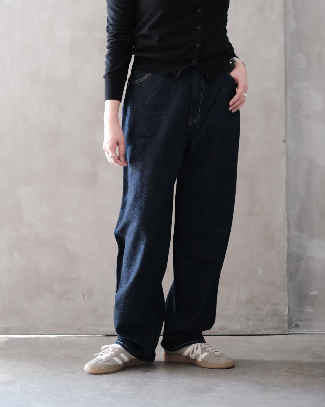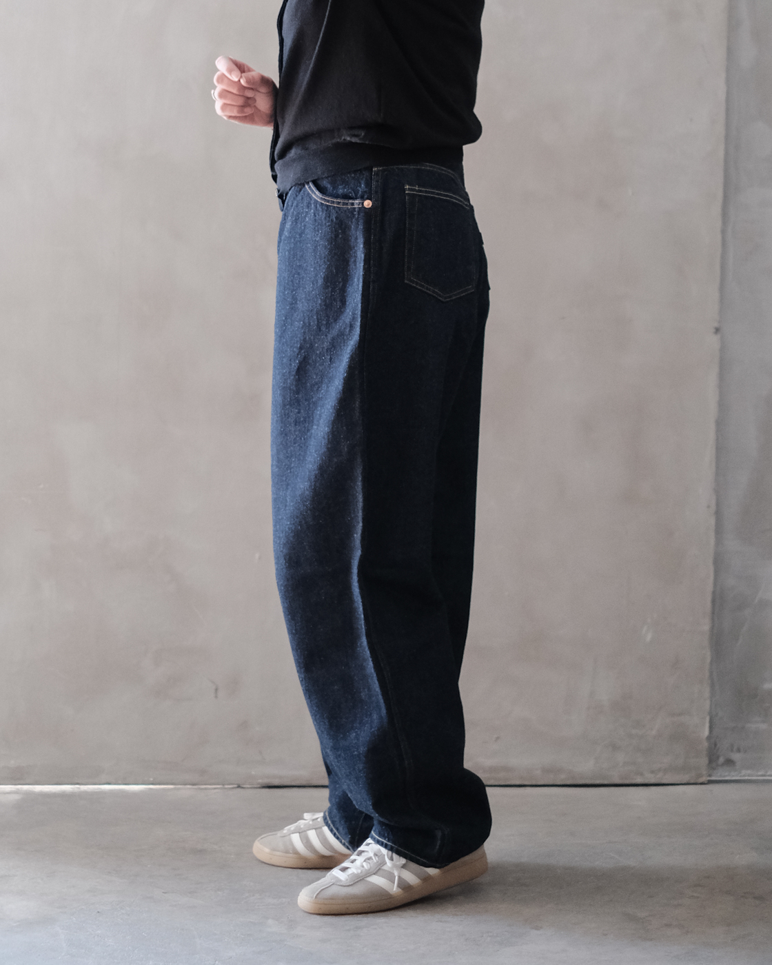待望の新型となる緩さのあるバギータイプのデニムパンツ。