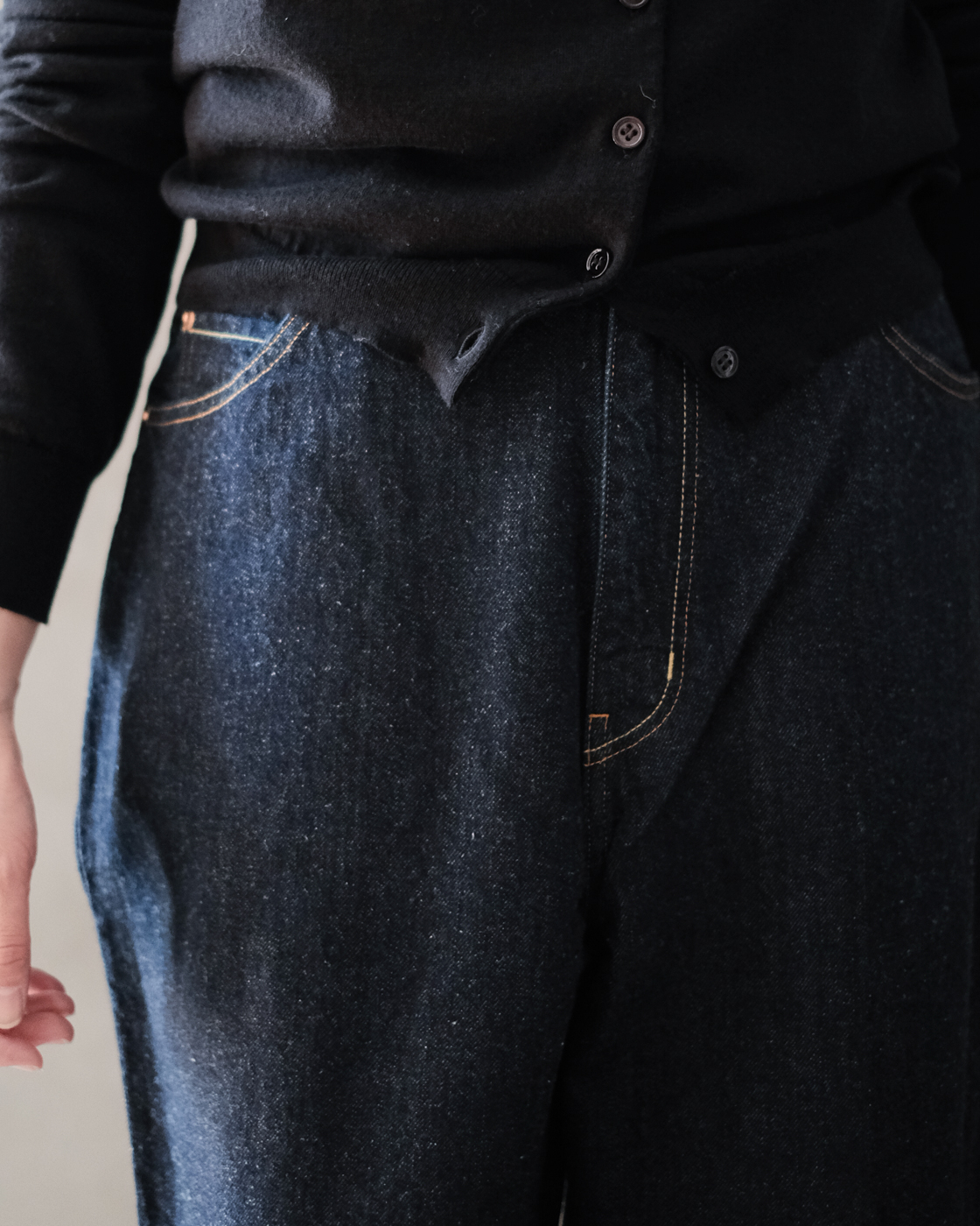 Cotton Hemp Denim Buggy Pants (35 denim) col.Indigo
