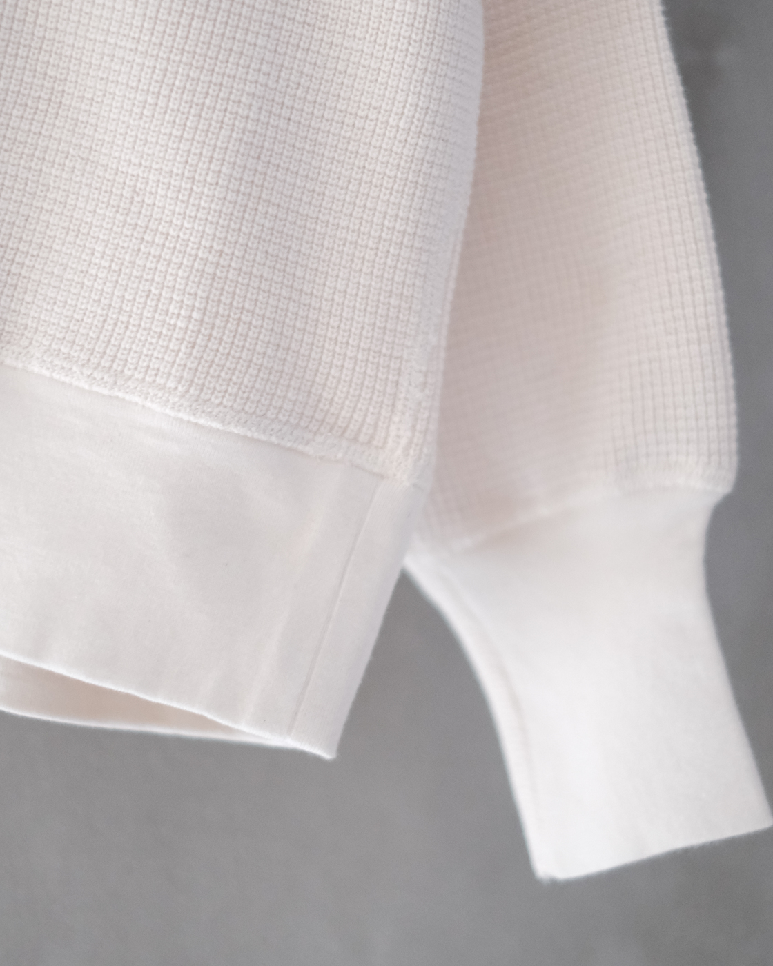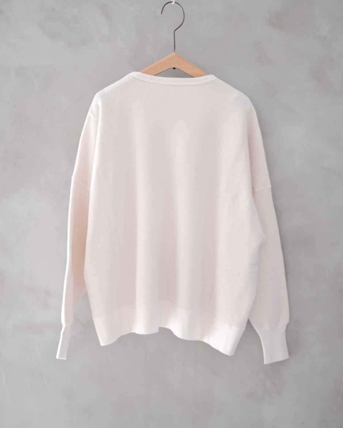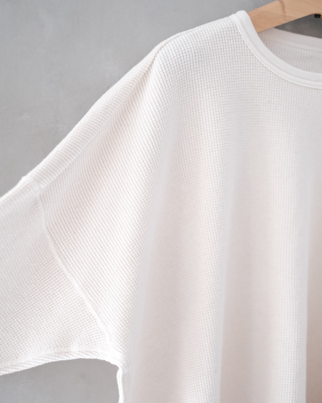 立体的な凹凸がある編み模様でふっくらとした質感の為、肌触りが心地良く温かみある着心地です。