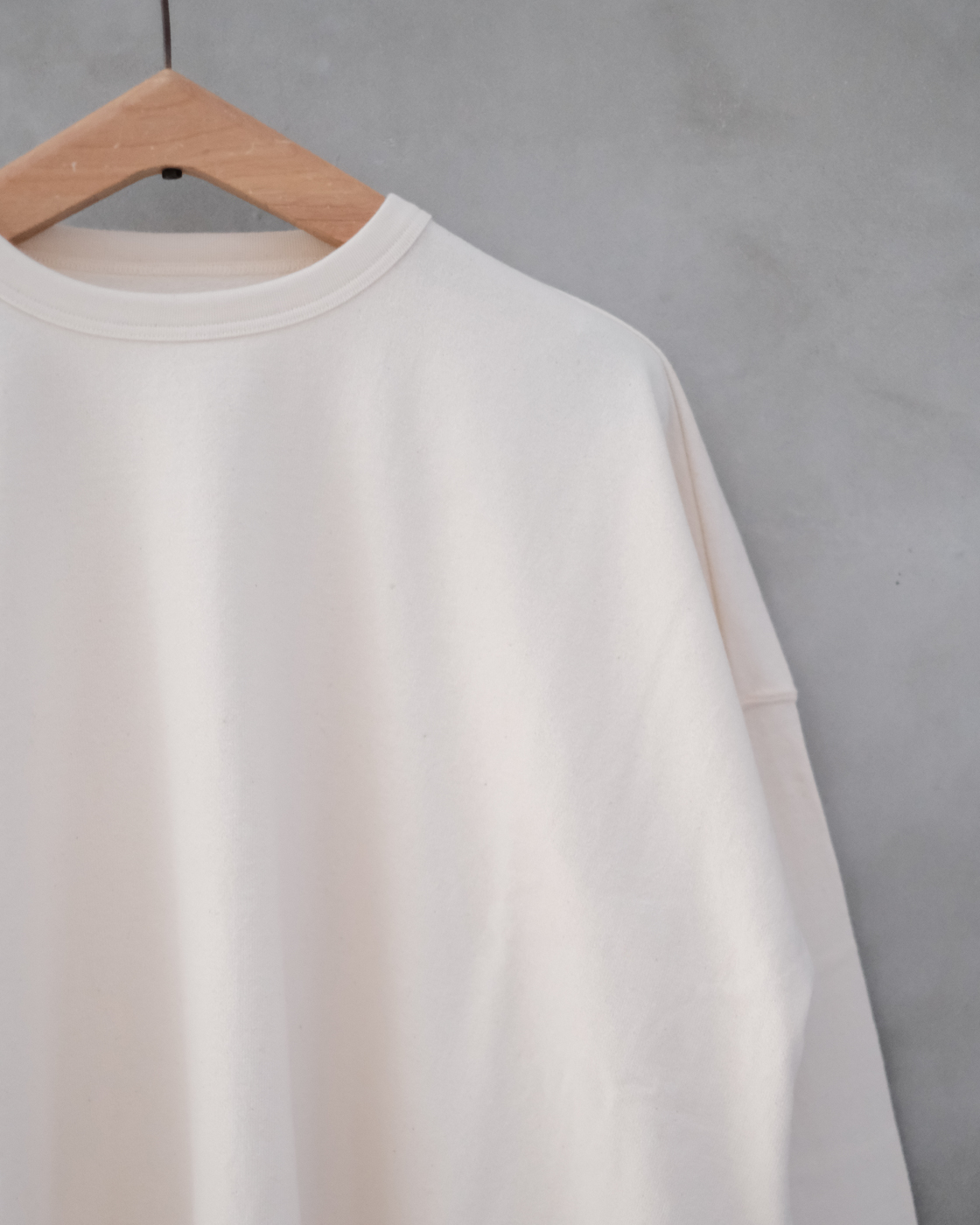 裏毛ほど厚みはなく、天竺よりもしっかりした素材感となっており、