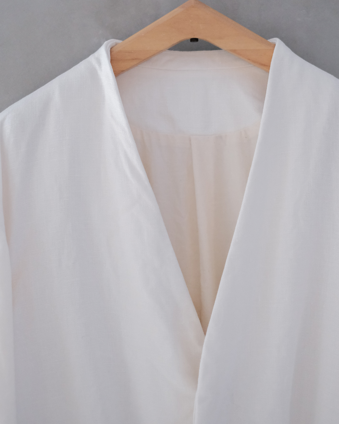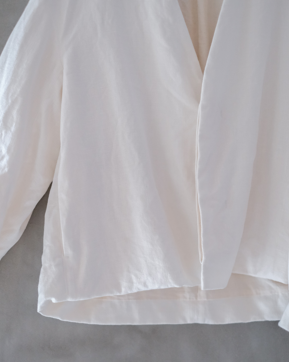 着用した時にゴーシュの美学の一つでもある立体的なフォルムが出るよう、前後の着丈の長さにも工夫が。